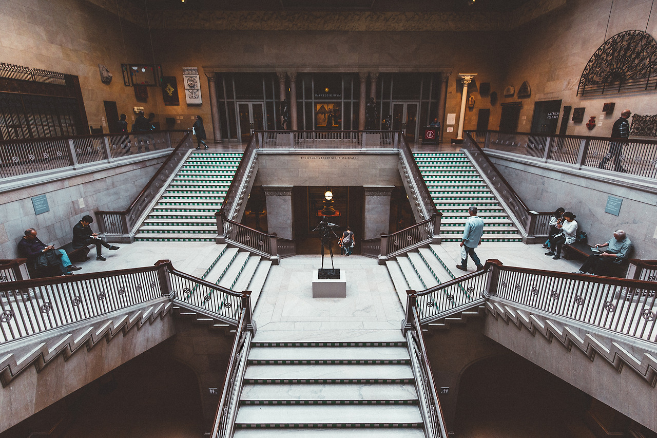 시카고 미술관 건축물 내부는 간결함이 가득 담긴 클래식한 느낌을 묻어나는 장소였다. 일정한 간격으로 만들어진 계단부터 곡선으로 이루어진 모던한 계단, 하얗고 높은 천장에서는 밝은 자연광이 창을 통해 들어오고 구석진 자리에는 은은한 조명 빛이 그 자리를 빛내고 있었다. 내가 미술관을 찾는 또 하나의 이유는 단순히 미술품을 보고 싶어서가 아니라 미술관의 구조와 건축의 미를 만나고 싶어서이다. 오히려 미술품 관람보다 미술관 관람에 더 관심을 두고 있기에 미술관을 찾는다.