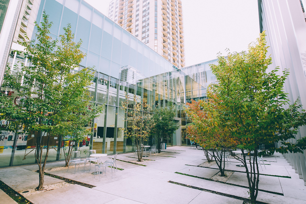 시카고 도시 중심지 근처에 자리 잡고 있던 시 재단 건물은 거대하지는 않았지만 외형적으로 굉장히 인상적인 디자인으로 설계됐단 느낌을 받게 해준다. 외부 벽 전면이 내부를 들여다볼 수 있는 철조망으로 되어있으며 안쪽으로 들어가면 나무들이 심어진 입구/마당이 자리 잡고 있다. 마당과 실내를 가르는 벽면은 전면이 유리로 되어 있어 자연광이 실내로 자연스럽게 드나들 수 있게 되어있으며 편안한 분위기가 물씬 풍겨 나고 있었다.