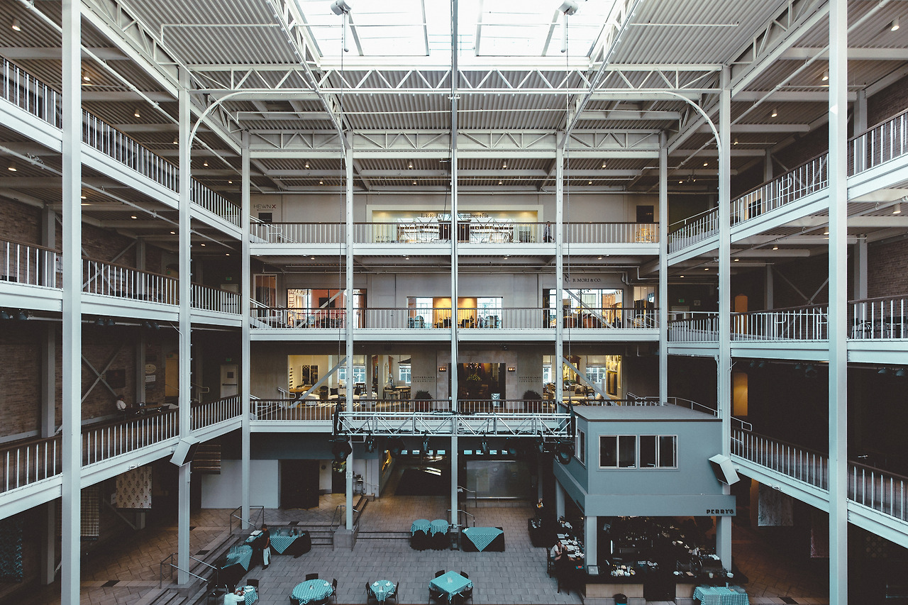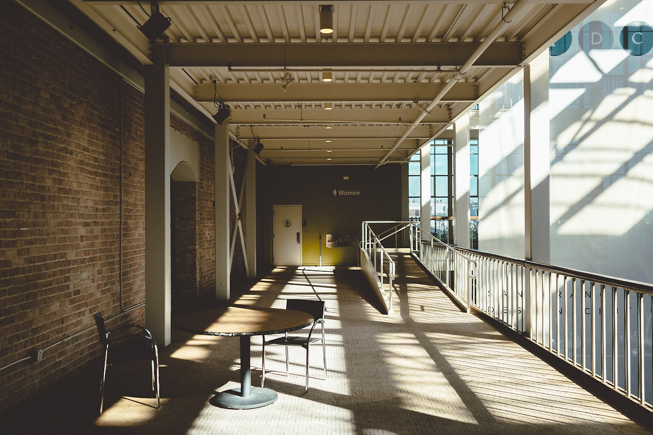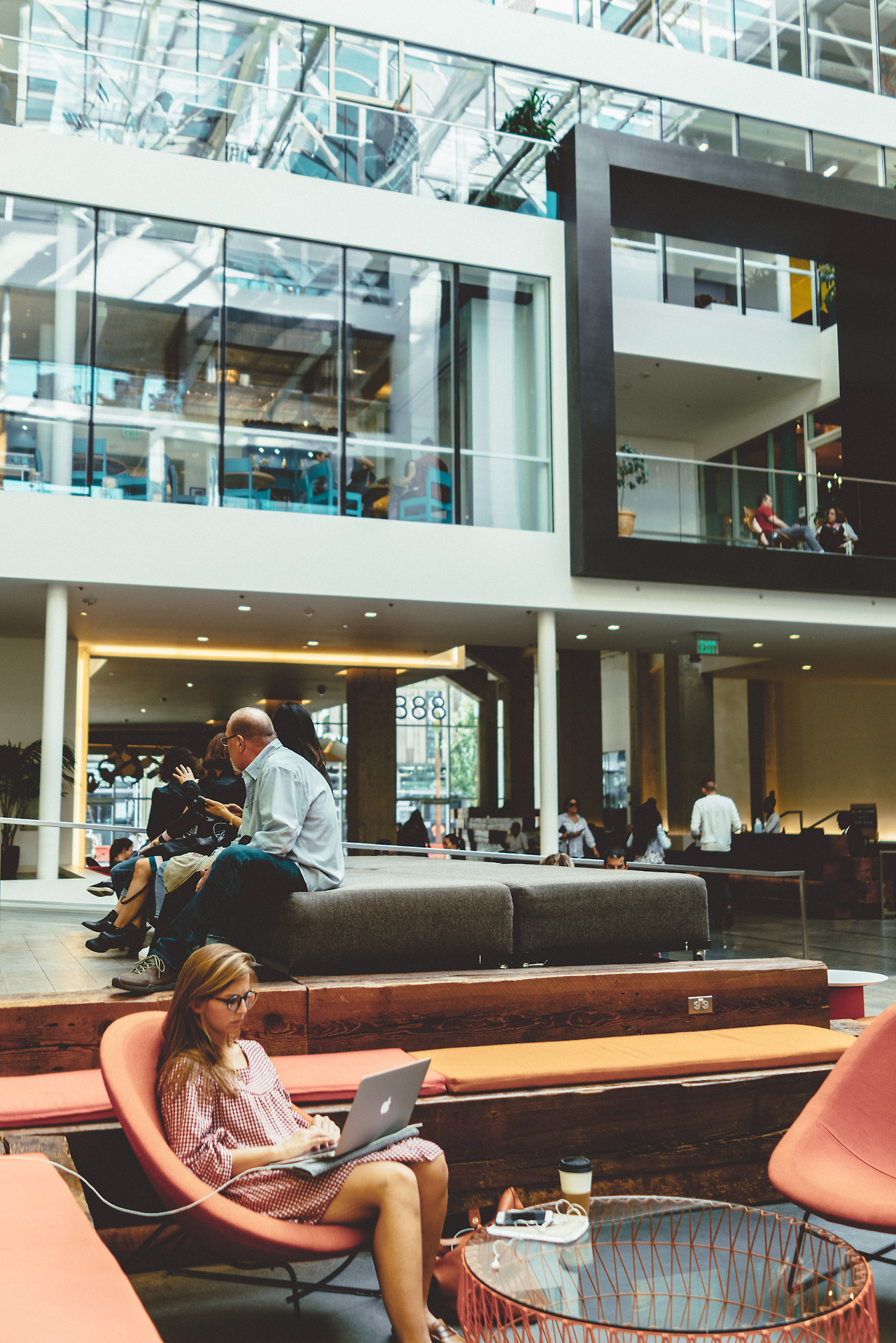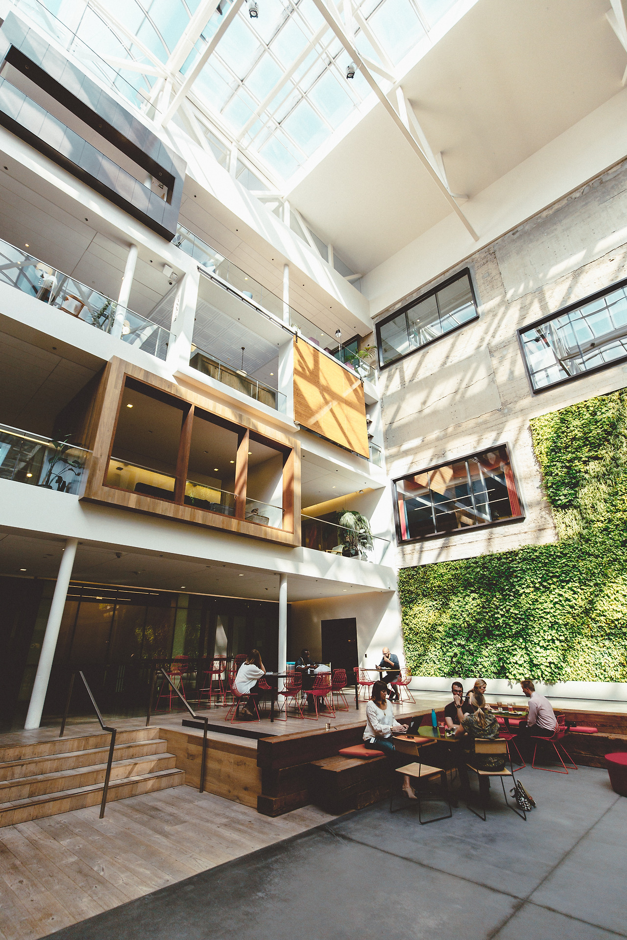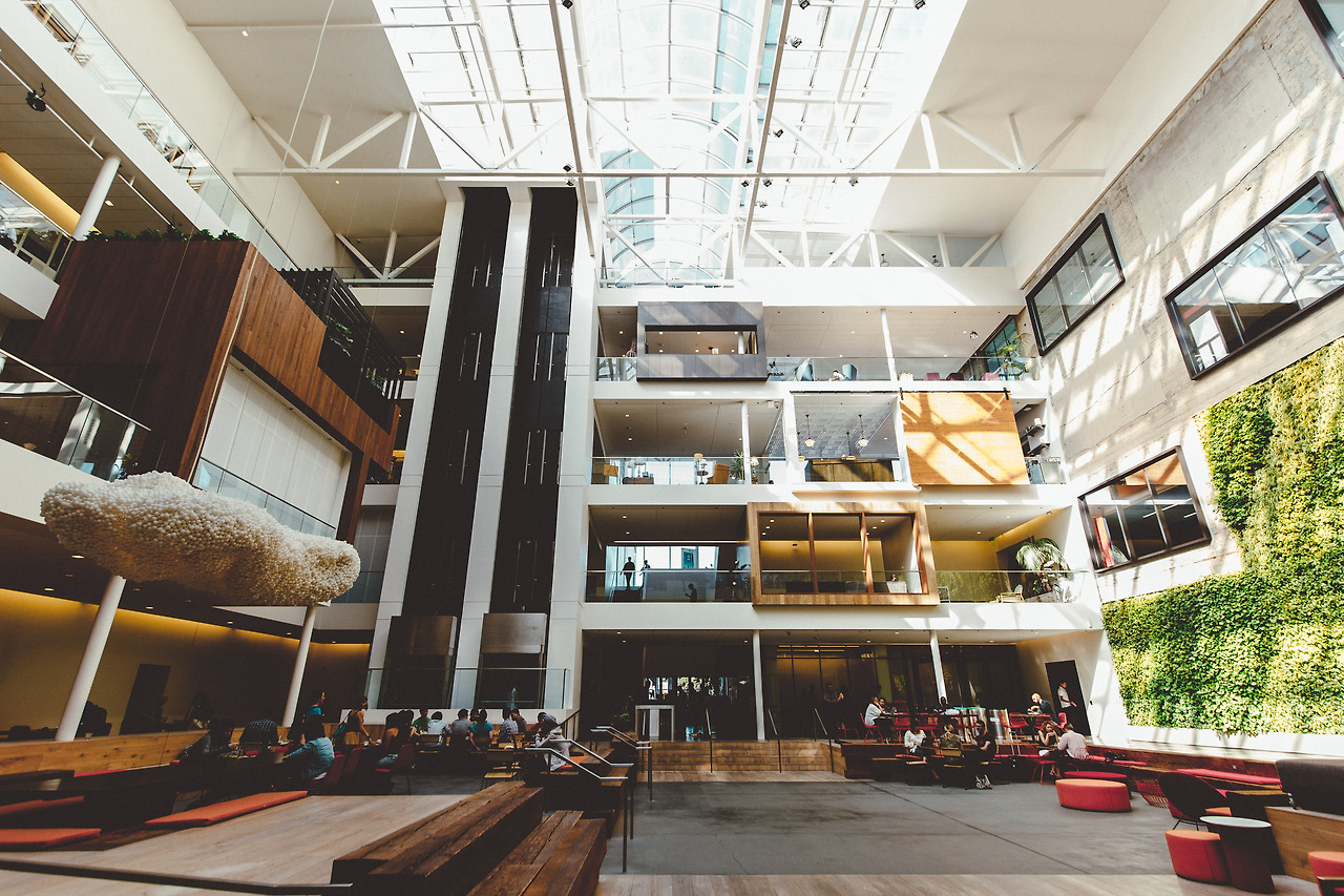 높은 천장에서는 햇빛이 내부로 스며들고 있었고 네모난 중앙 로비 1층에는 아담한 카페가 자리하고 있었다. 각 층의 복도에는 작은 테이블이 있어 누구나 휴식을 취할 수 있는 장소가 있었다. 샌프란시스코의 느낌이 물씬 풍기는 장소 같았다. 여유롭고, 자유스럽고, 따사로운 느낌이랄까?