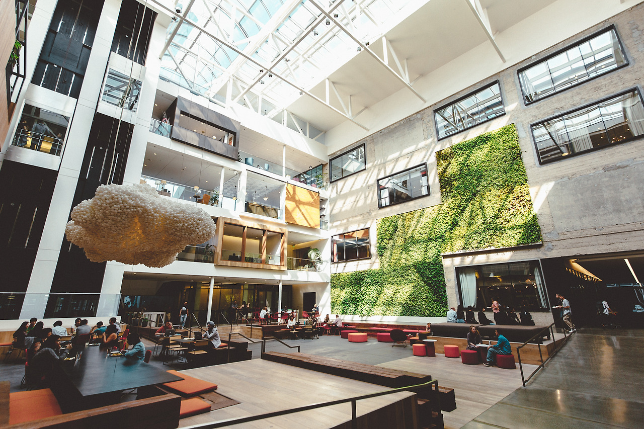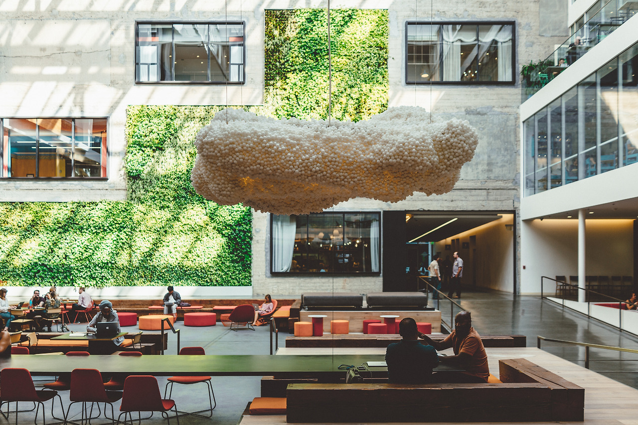 인상적이었던 건 실내 분위기는 친환경적이라는 것이었다. 한쪽 벽면을 가득 채운 진짜 풀잎들이 있었고 진짜 목재를 이용해 만든 의자와 테이블들 즐비해 있었다. 그곳에서 자연스럽게 본인의 할 일들을 하고 있는 사람들과 다양한 인종들이 어우러져 미팅을 하고 있는 모습도 쉽게 볼 수 있었다.