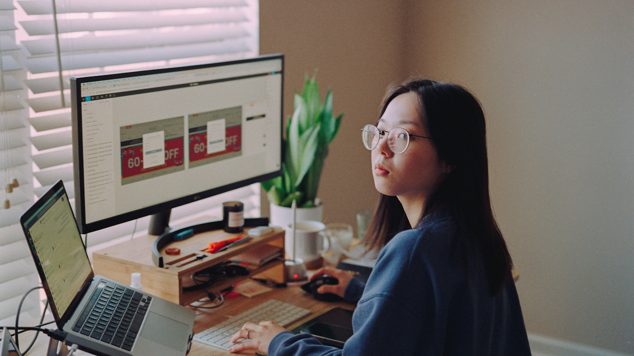 자택 근무를 시작한 제 아내의 모습도 담아보죠.