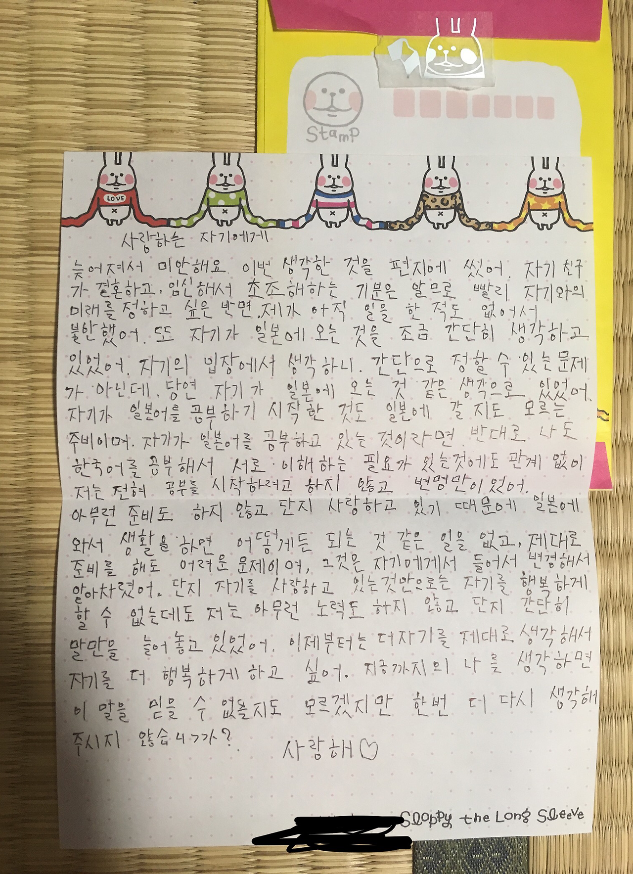 시간을 잠시 달라고 한 남편은 일주일 뒤 손으로 쓴 편지를 보냈다.