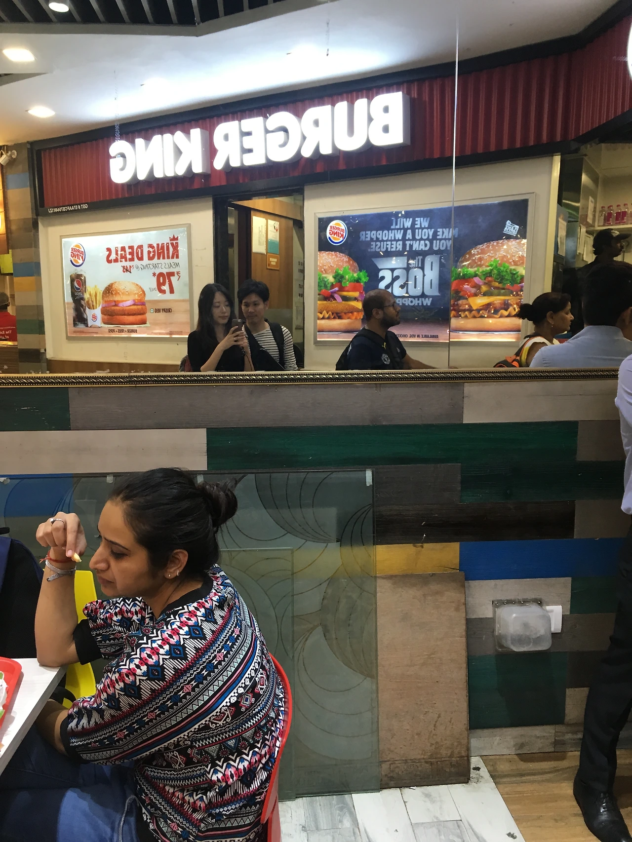 인디라 간디 공항에서 지하철을 타고 여행자의 거리인 빠하르간지까지 가는 길. 잔뜩 긴장한 와중에도 배는 정직하게 고팠기에 환승역에서 버거킹을 보자마자 반갑게 들어갔다. 베지테리언 메뉴로 주문했는데 가격도 저렴하고 매콤한 소스가 정말 맛있었다. 직원도 친절하네...라고 생각하는 와중에 몇 백원 안 되는 돈이라고 잔돈을 가져가버렸다. 가이드북에서 본 주의점을 첫 식사에서 바로 체험했다. (설마 글로벌 체인인 버거킹에서 이럴 줄은 몰랐지)