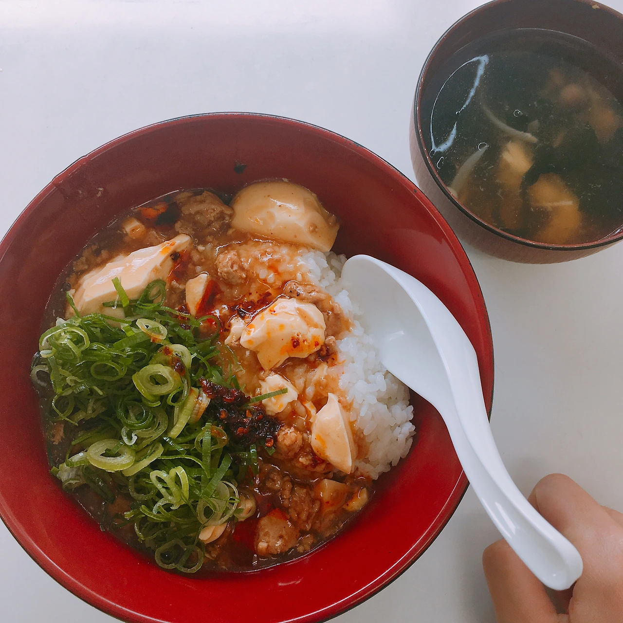 일본에서도 인기 많은 마파두부. 연두부라서 부들부들. 맵지 않게 해주시기 때문에 내겐 너무 익숙한 중국 라유(老干妈의 라유!)를 뿌려서 :)