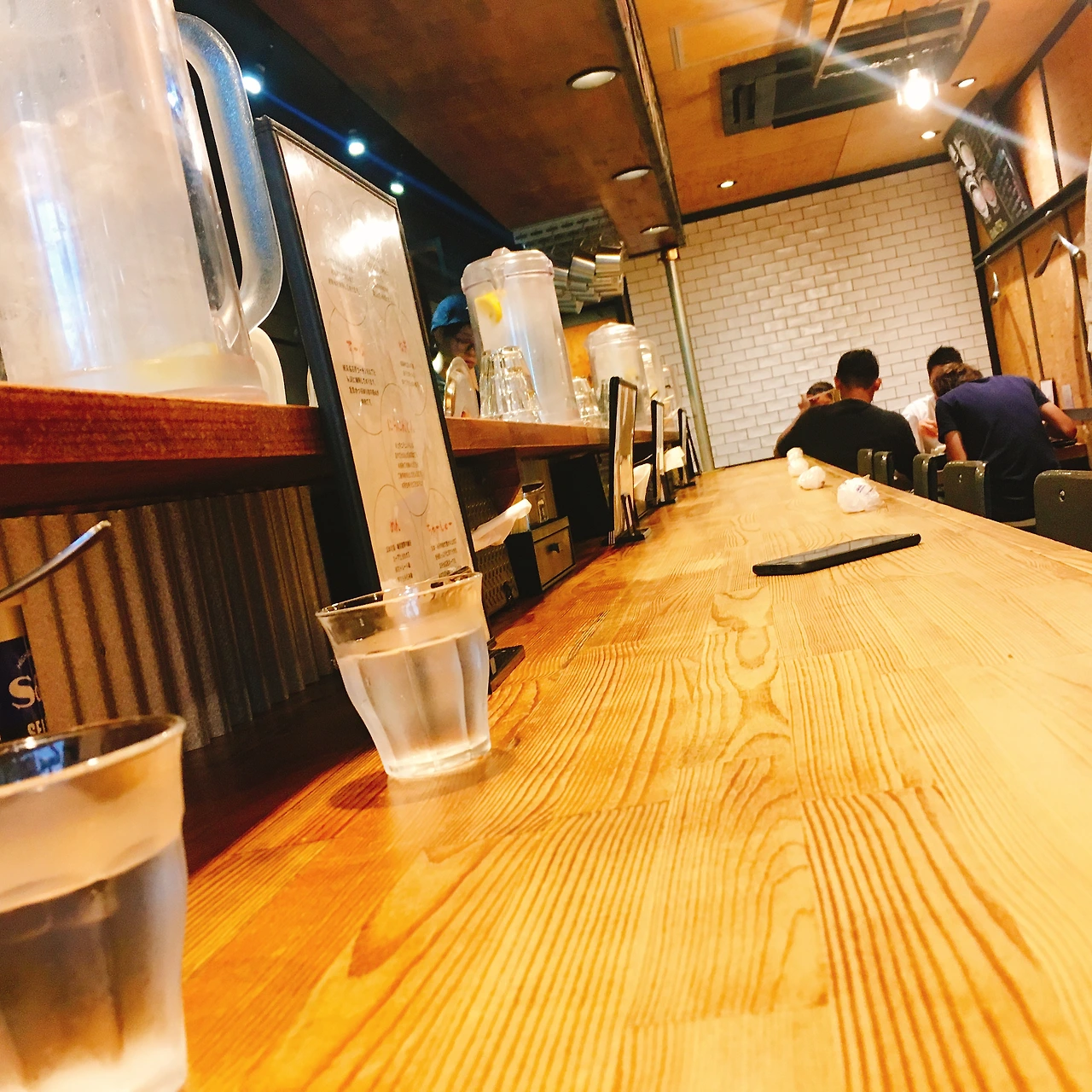 라멘집치고 굉장히 모던한 분위기의 인테리어 + 라멘집에서 보기 힘든 전석 금연 식당이다. 카운터와 테이블석이 있고 가게는 그리 큰 편은 아니다.