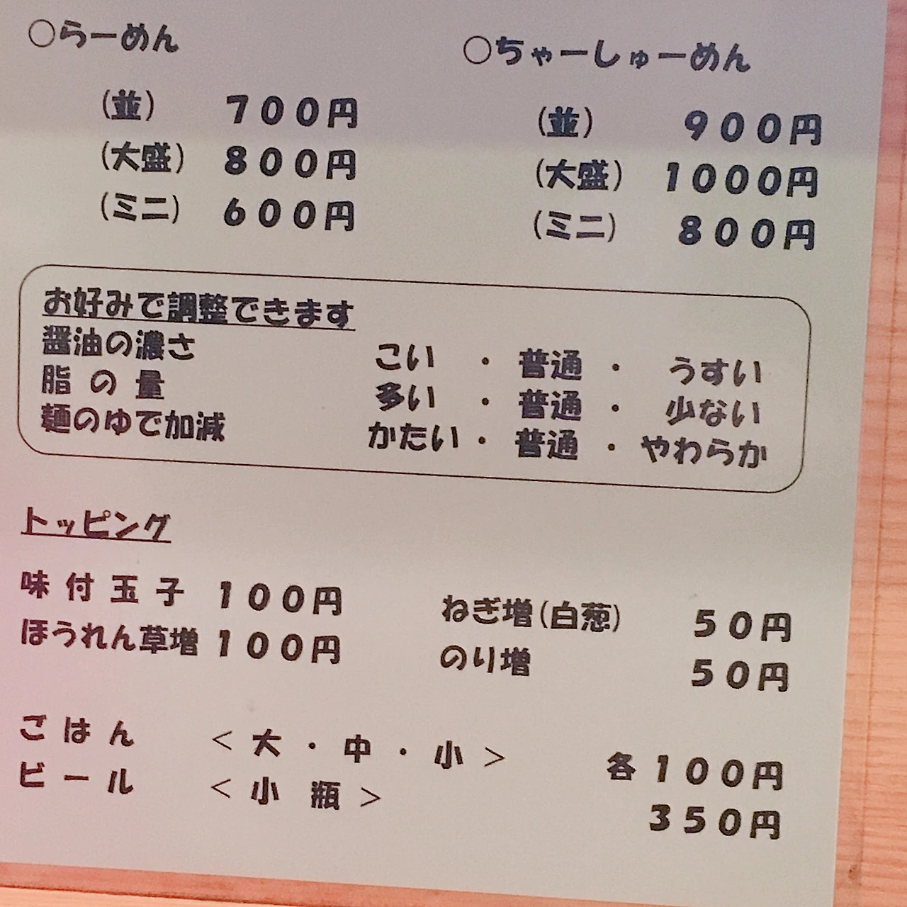 이 집 라멘에는 시금치가 토핑되어 있는데 담백한 맛과 향이 돈코츠 국물과 정말 잘 어울린다. 시금치는 추가 가능하니 원한다면 티켓 발권 시 ほうれん草追加도 구매하면 된다. (추천) 계란은 기본 토핑에는 없으니 필요 시 역시 티켓 구매가 필요하다. 그 외에 차슈와 김이 기본으로 토핑되는데 차슈는 대단하진 않아도 부드럽게 조화스러운 맛이고 김은 국물에 살짝 적셔 면을 싸 먹으면 맛있다.