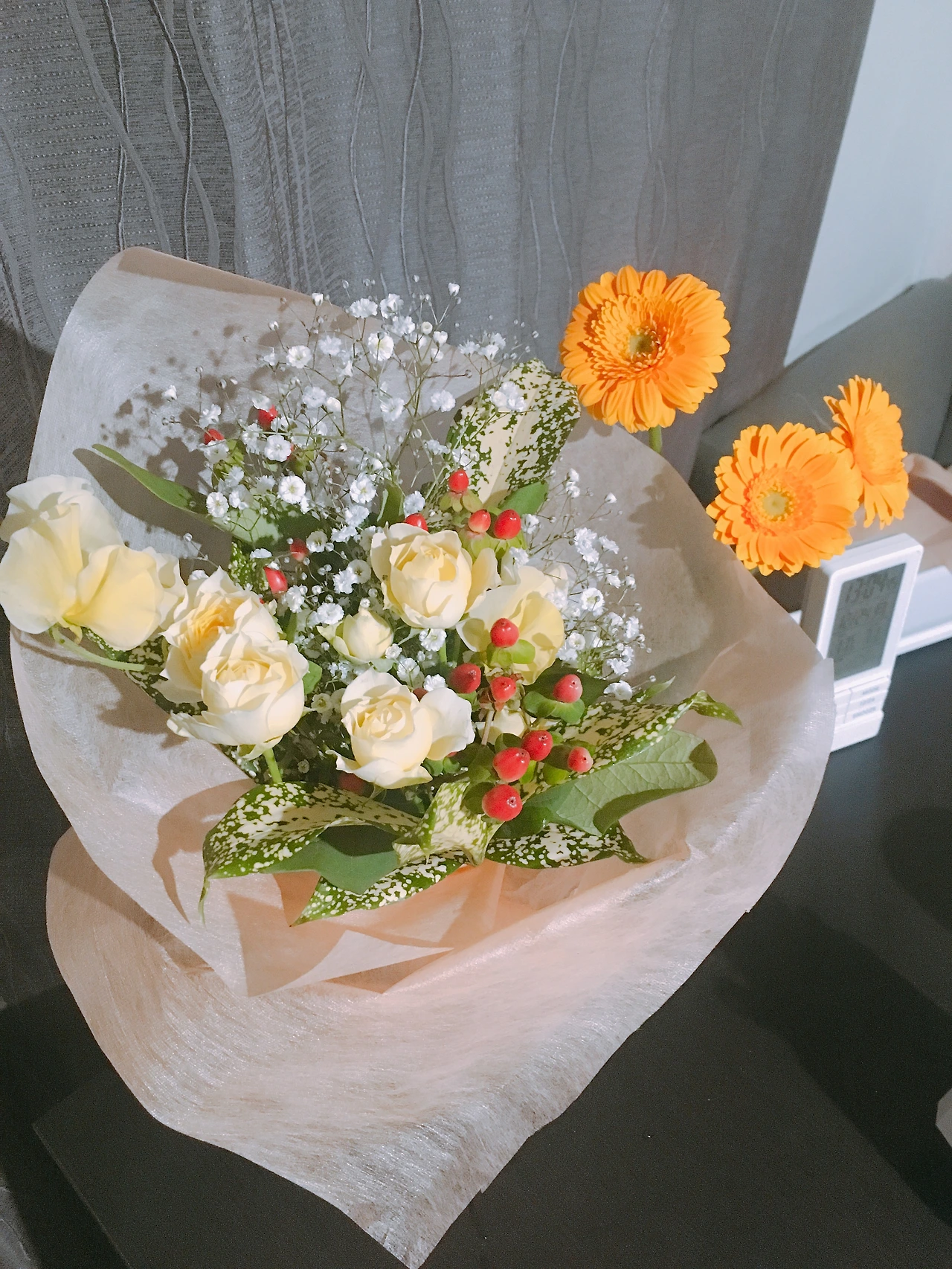 “10주년 축하해용!”하며 들고들어온 꽃 :-)
