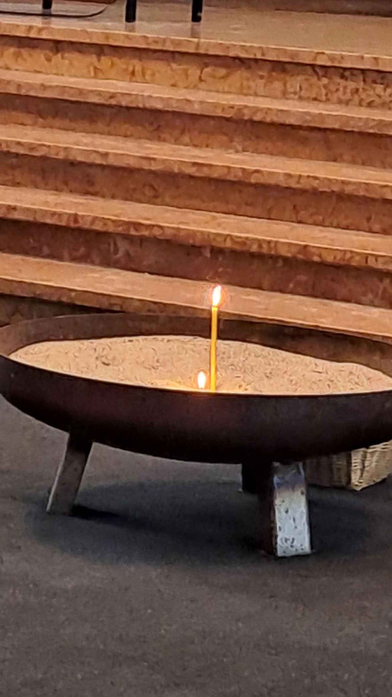 경건의 의식으로 촛불을 켜고 찬송을 부르고