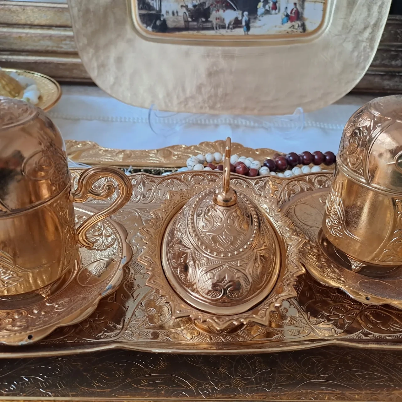 실내는 그녀의 모습처럼 아름답고 섬세했어요. 벽은 화려한 비잔틴 양식의 문양으로, 커튼은 프릴이 곱게 드리워졌어요. 테이블 위에는 고급스런 찻잔과 쟁반이 그윽했어요.