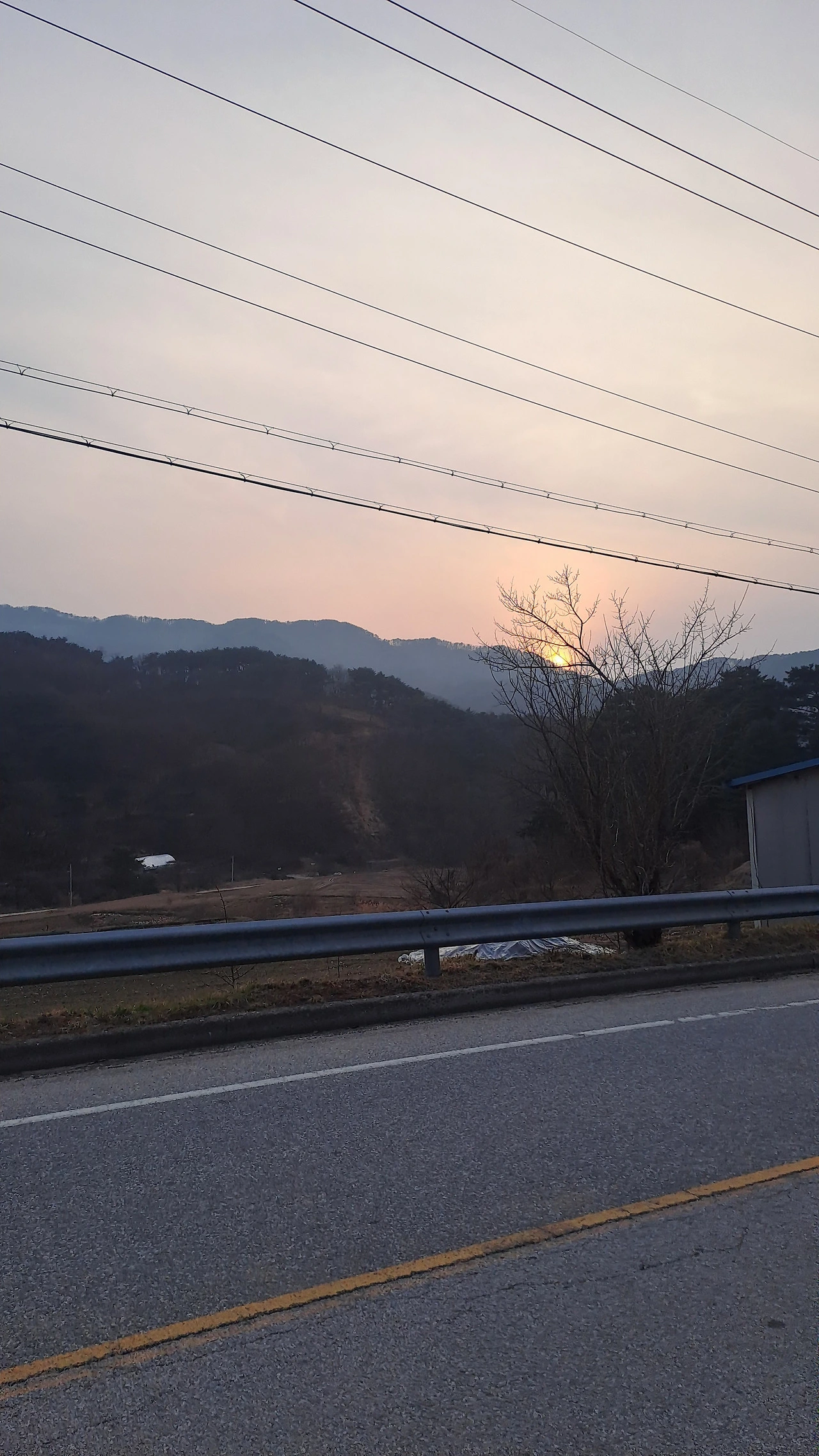 저녁을 먹고 10분 정도 산책을 나간다. 석양을 보는 재미가 쏠쏠하다. 앞 산의 능선이 눈을 맑게 한다. 산이 파헤쳐져 있다. 길을 내는 건가? 건축을 하는 것인가? 산 중턱에 머리털이 빠진 모양새가 처량하다. 생각에 잠기다 다시 방으로 직진!