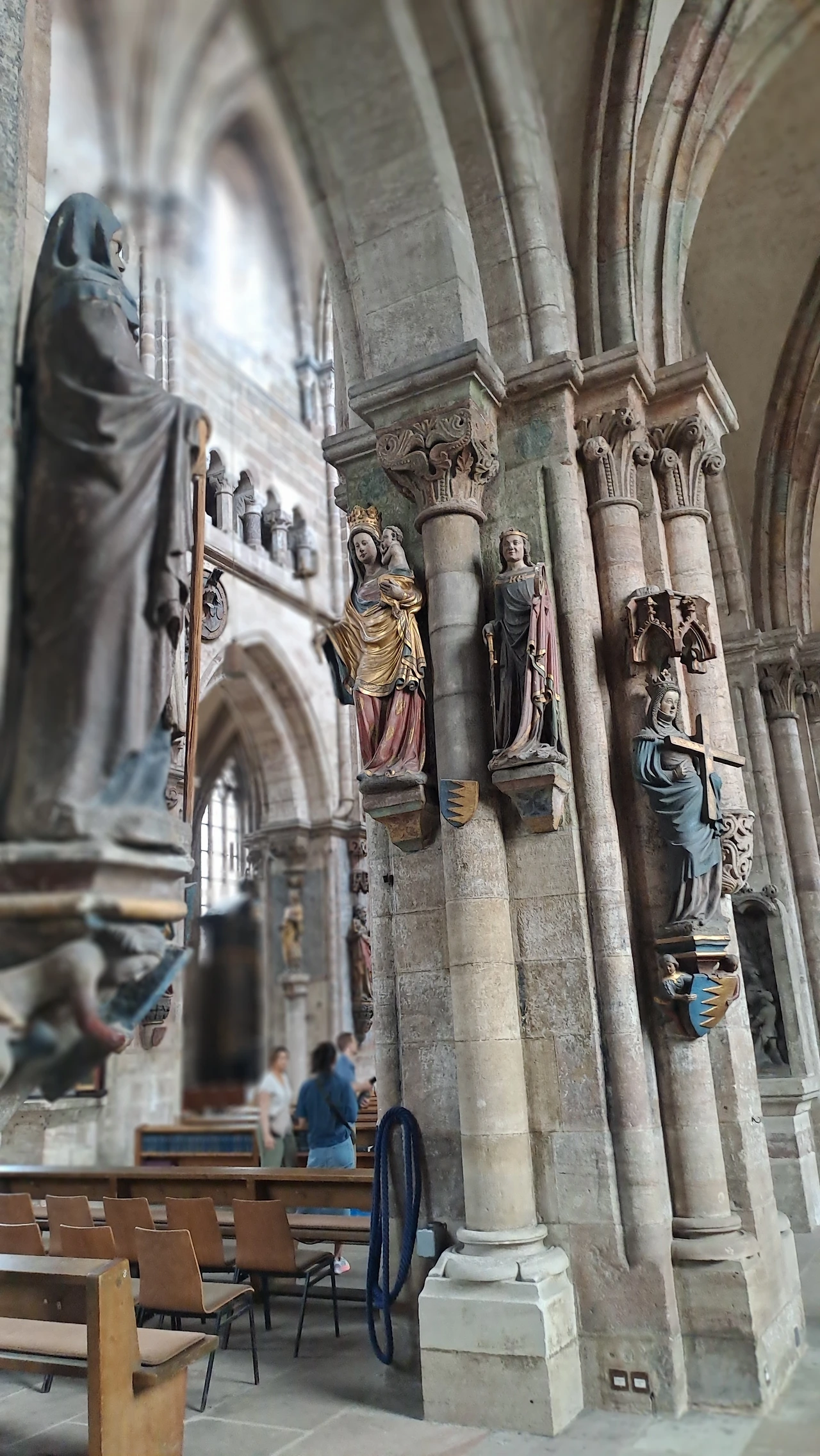 올해는 성 제발트의 성인 지정 600년이다. 그래서인지 다채로운 행사가 열린다. 제발트,라는 인물은 뉘른베르크에서 숭배 수준이다. 신성로마제국 하인리히 3세 시절에 활동했고, 1056년에 사망했다. 그는 이탈리아를 순례 후 뉘른베르크에 머물며 선교활동을 했다. 그의 유해가 안치된 교회에 많은 순례자들이 찾아들어 도시도 유명해졌다고 한다. 성 제발트에 대한 다양한 전설이 있다. 보통 순례자의 모습으로 묘사되는데 지팡이와 모자를 쓰고 자신의 교회를 팔 아래 끼고 있다.