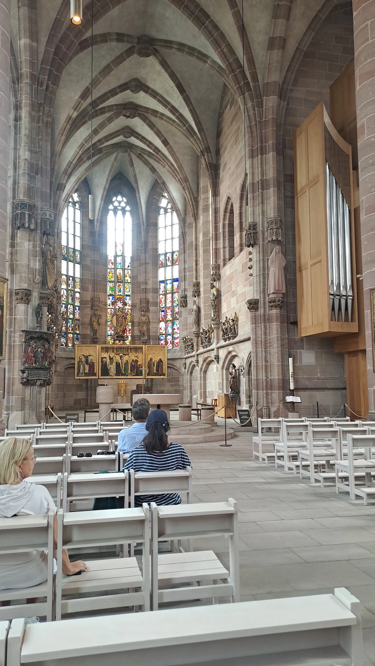 뉘른베르크의 수호성인인 성 제발트를 기리는 성 제발트 교회다. 1255년에 건축을 시작해 1300년 경에야 완성되었다고 한다. 고딕양식에 로마네스크 양식이 혼합되어 있다. 교회는 2차 대전 당시 파괴되었다가 1957년에 복원되었다. 이 도시에서 태어난, '캐논'의 작곡가인 요한 파헬벨이 말년에 오르가니스트로 활동한 교회라 더 유명하다.