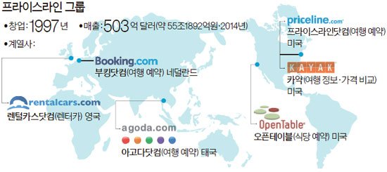 프라이스라인 그룹은 익스피디아 그룹과 마찬가지로 공격적 인수합병을 통해 '규모의경제'를 실현시켰습니다. 다음은 프라이스라인 그룹의 주요 인수합병 내용입니다.