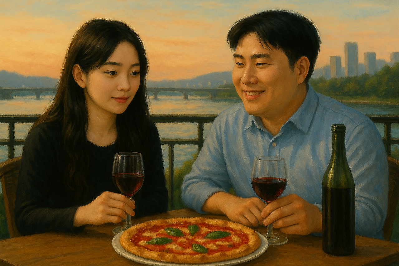 피자힐에서 와인잔을 부딪히며, "오늘 어땠어?"라고 묻는 거다.... 그런데 이 모든 건 상상이다. 한강뷰 레스토랑에 갈만한 여유도 없고, 같이 갈 여자친구도 없다. 자고 일어나면, 또 평택까지 일하러 가야겠지... 돈 낭비하기 싫어서 데이팅 앱에서 데이트 신청 하나 안 보내고 남의 여자가 될 사람들 프로필 감상만 하고 있지...