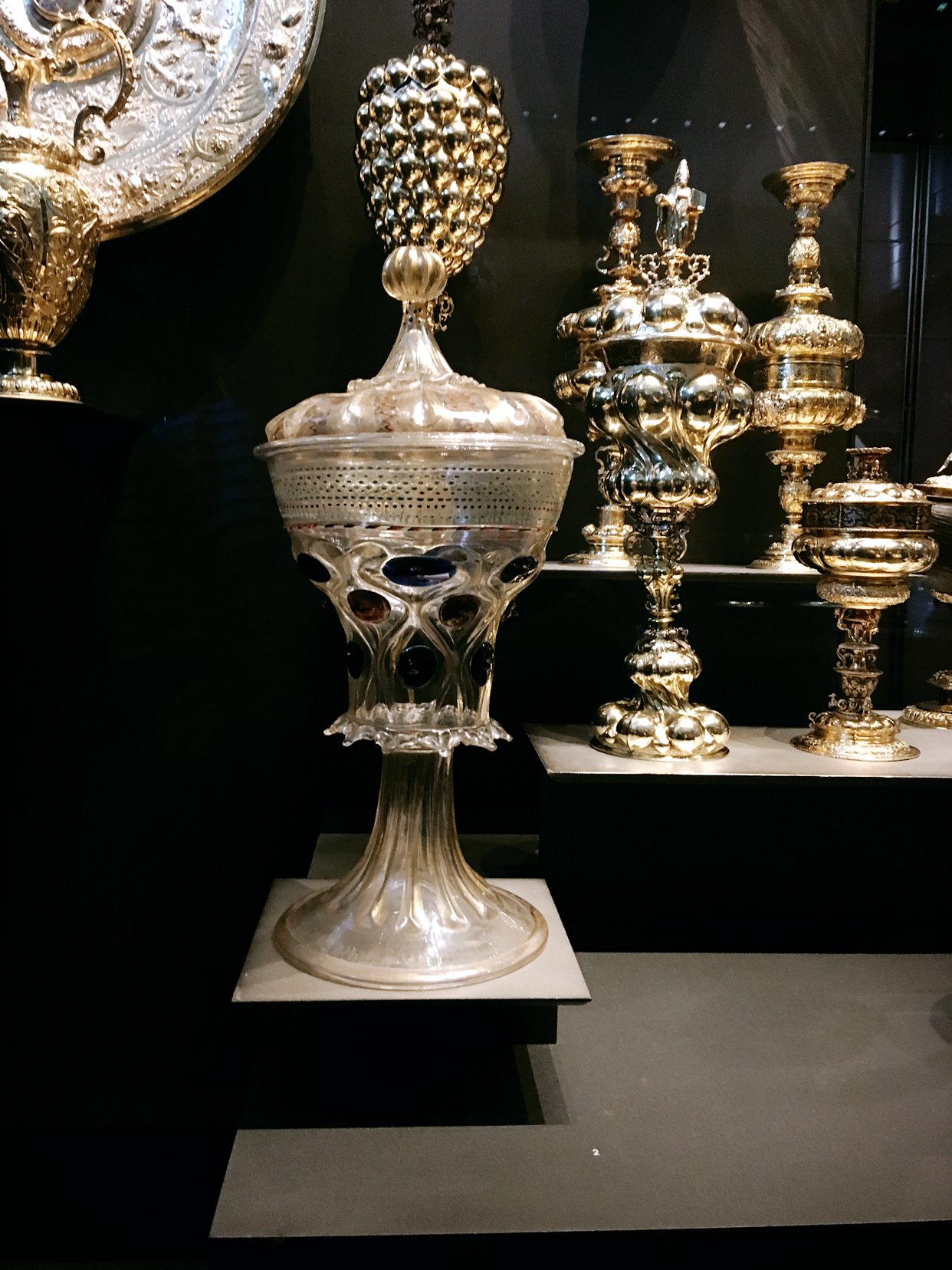 15세기 16세기 언제인지 모르지만 옛날 옛적 만들어졌다는 유리잔을 보고 있다.