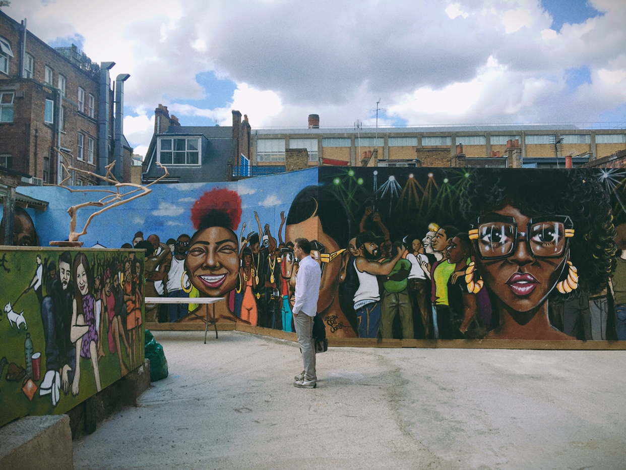 거리 곳곳 벽에는 그래피티 아트가 그려져 있었다. 하나의 예술 작품과 같은 이 아트들은 쇼디치 공간에 멋지게 스며들어 있었다.