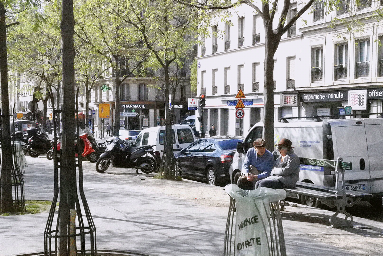 그렇게 걷다 보니 구글맵이 바티뇰 광장에 다다랐음을 알려 준다. 일직선으로 펼쳐진 도로 가운데는 공원이 있다. 도로 양옆에는 카페들이 줄지어 있다. 마네도 모네도 바지유도 이 거리를 이렇게 걸으며 고민하고, 방황하고, 또 도시의 아름다움에 감탄하지 않았을까.