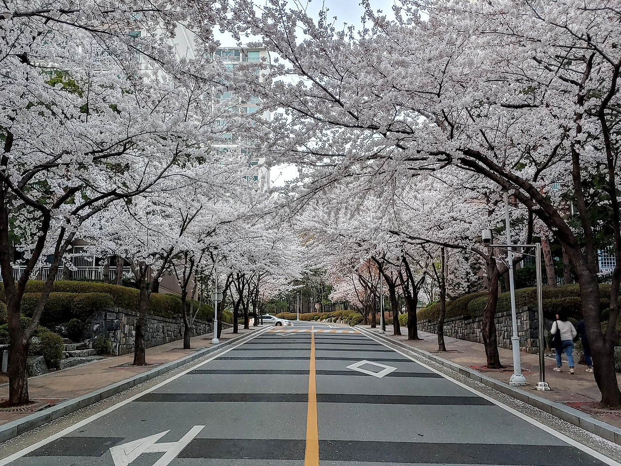 저녁에는 또 벚꽃 길도 걸었습니다.