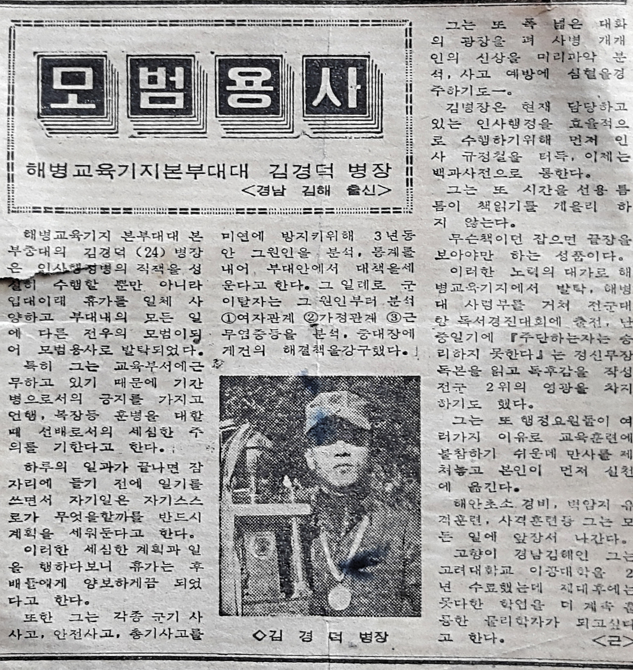 당시 해병대 사병의 복무기간은 25개월이고 육군은 30개월이었다.