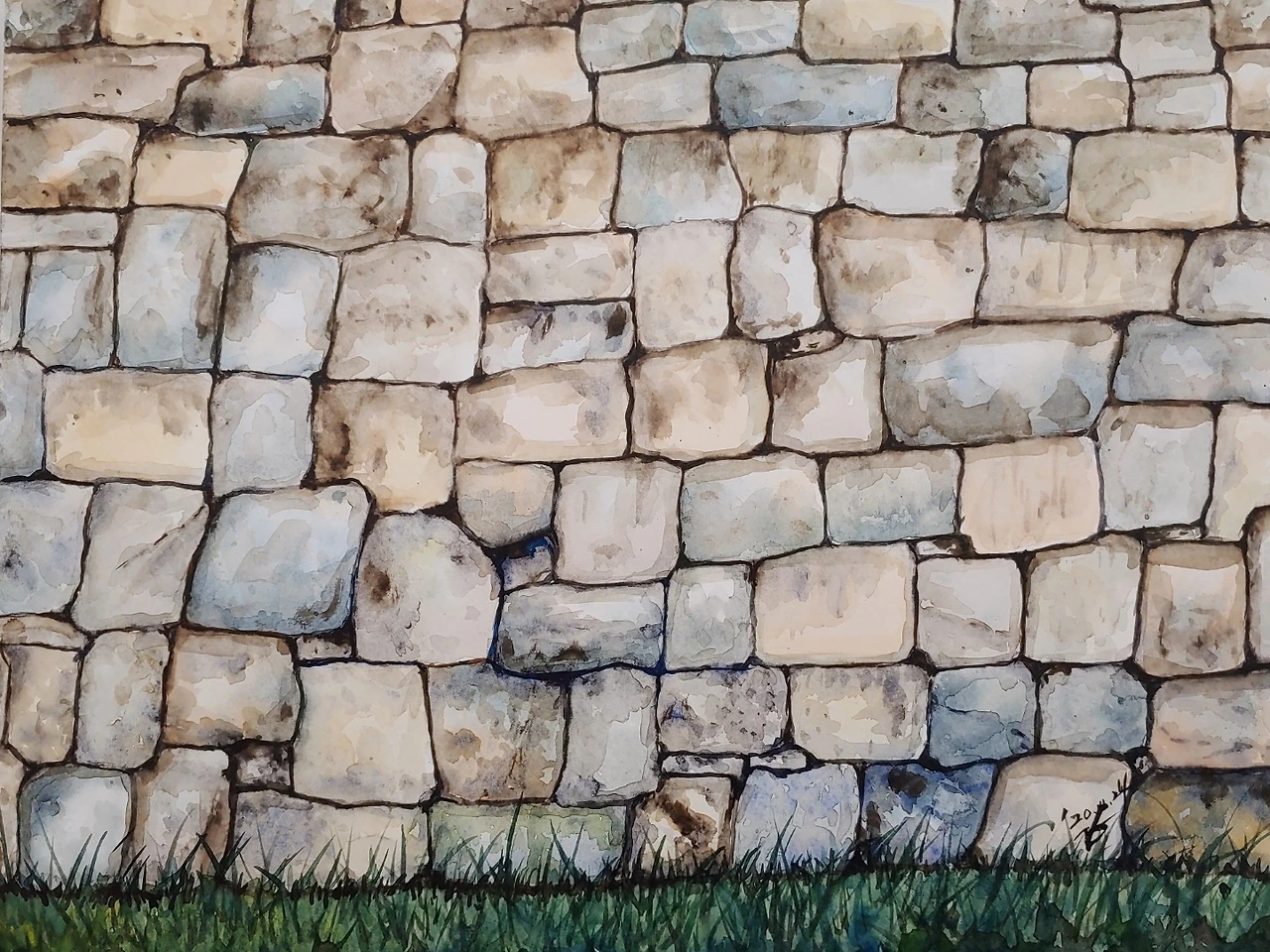 그만 두기 전 마지막으로 그린 수원 화성의 성벽이다. 그 속에 숨겨져 있을 불쌍한 그 옛날 민초 석공들의 애환과 흘린 땀방울을 생각하며 돌 하나하나에 정성을 많이 솓아 부었다.