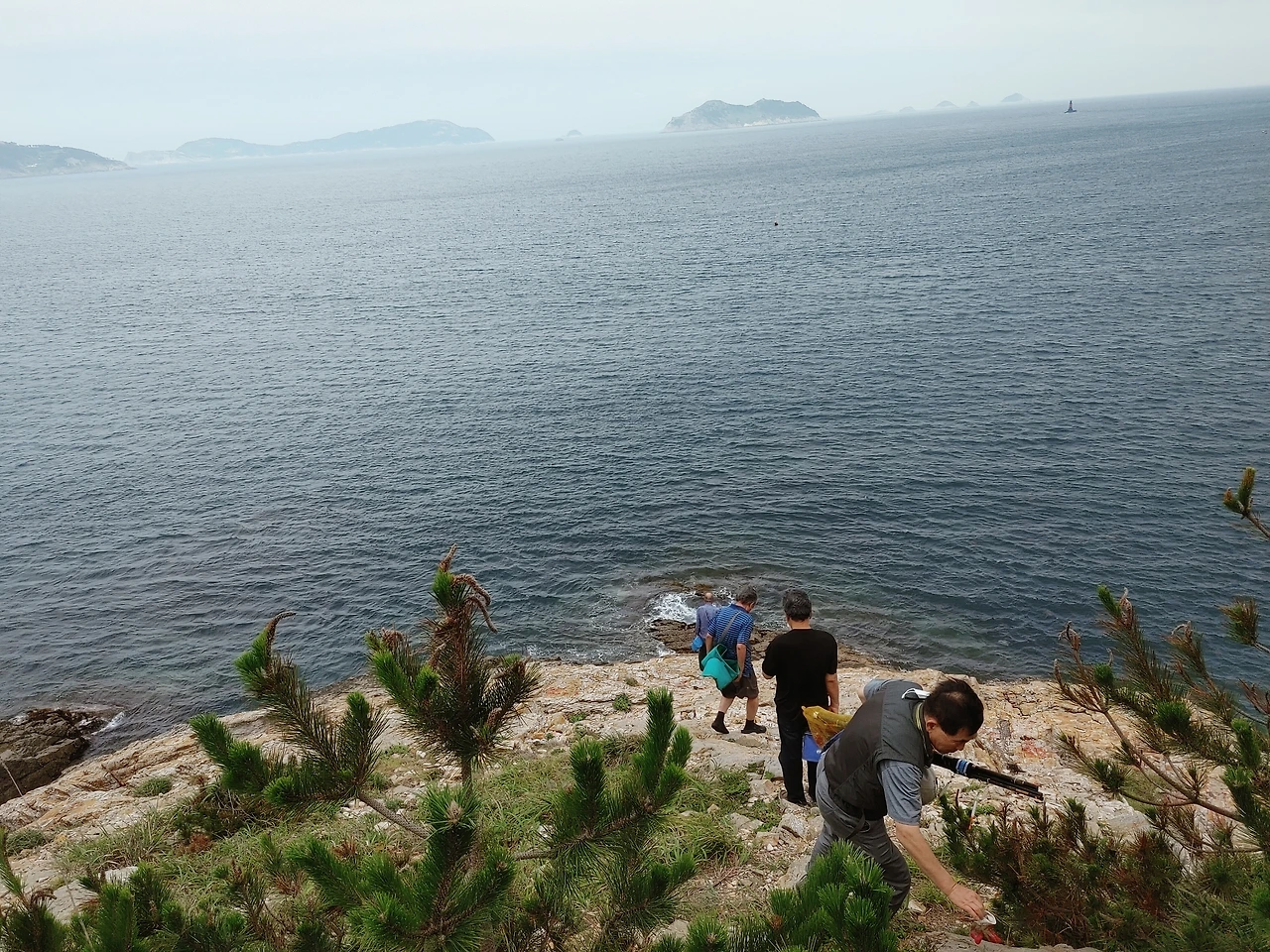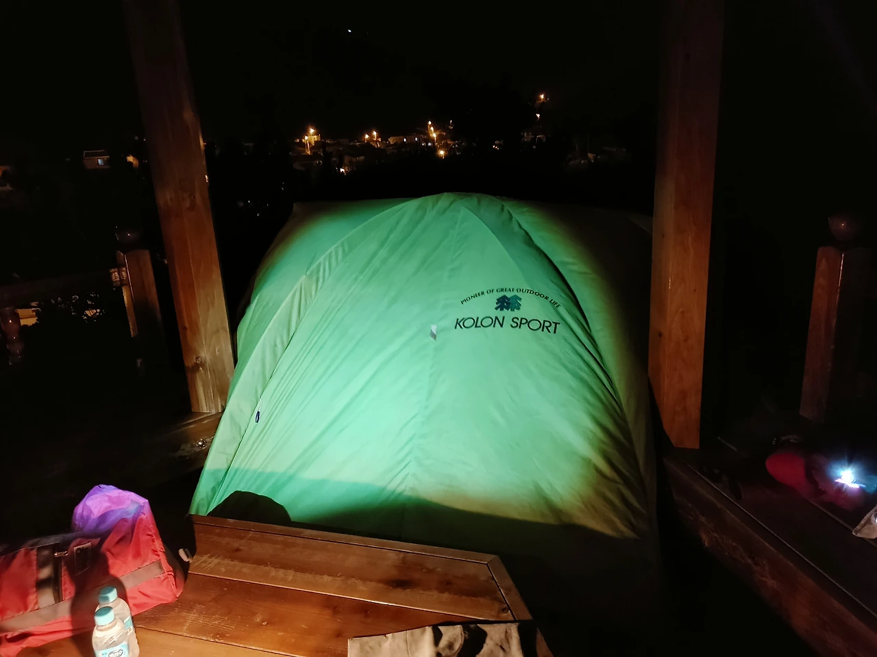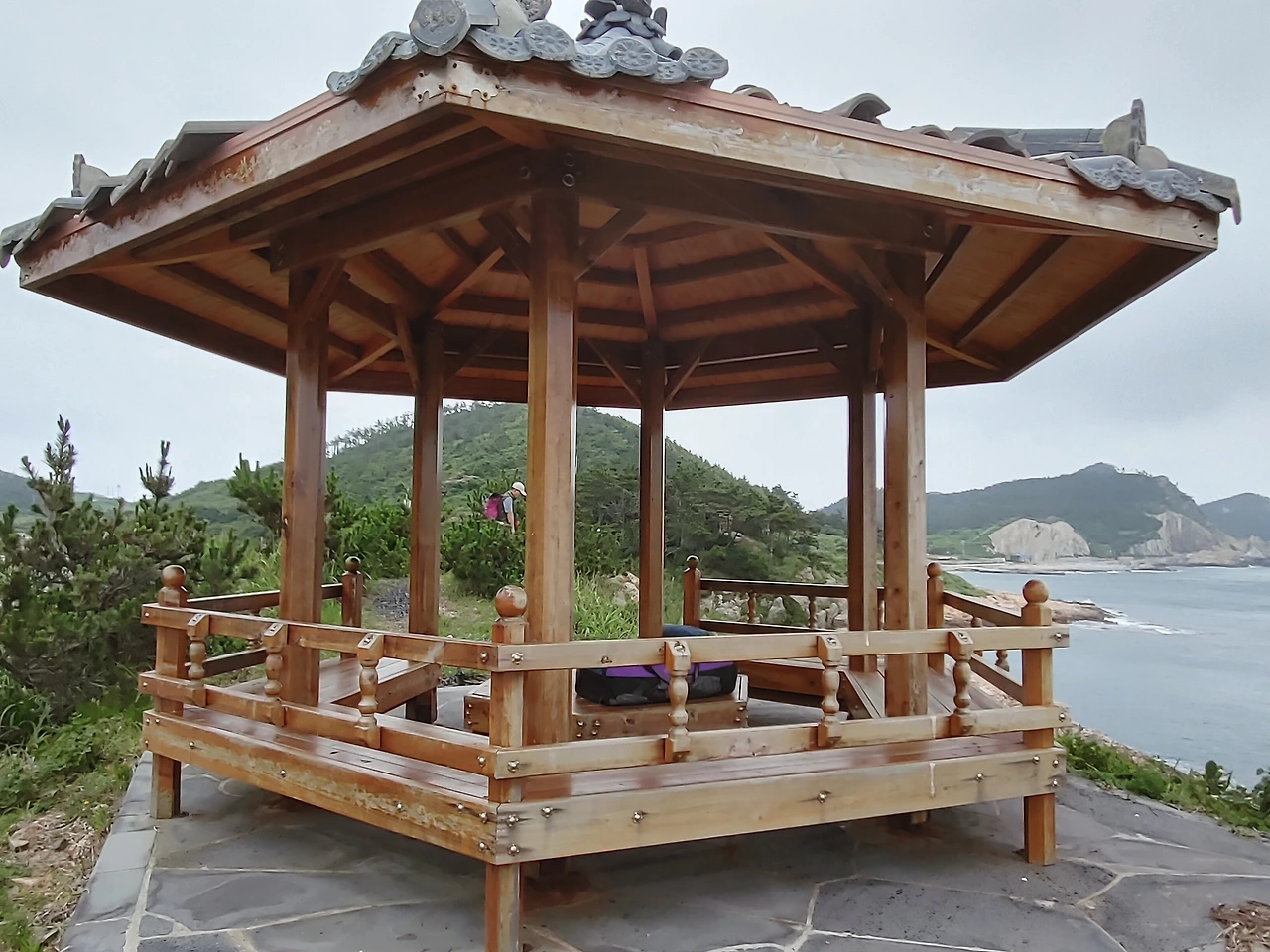 저물었는데도 내리지 않았습니다. 비 걱정은 되었지만 늦은 밤, 낮에 탐색해둔 마을 앞 바닷가 동산에 있는 정자로 야영장비를 메고 올라갔습니다.