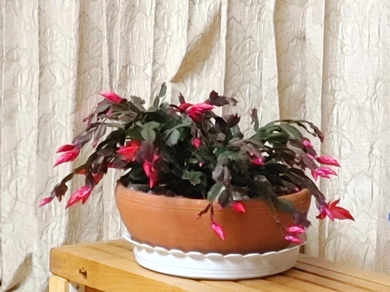 베란다 한 구석에서 제대로 밥(물)도 얻어먹지 못한 '게발선인장'이 이 추위에 발정을 했다.