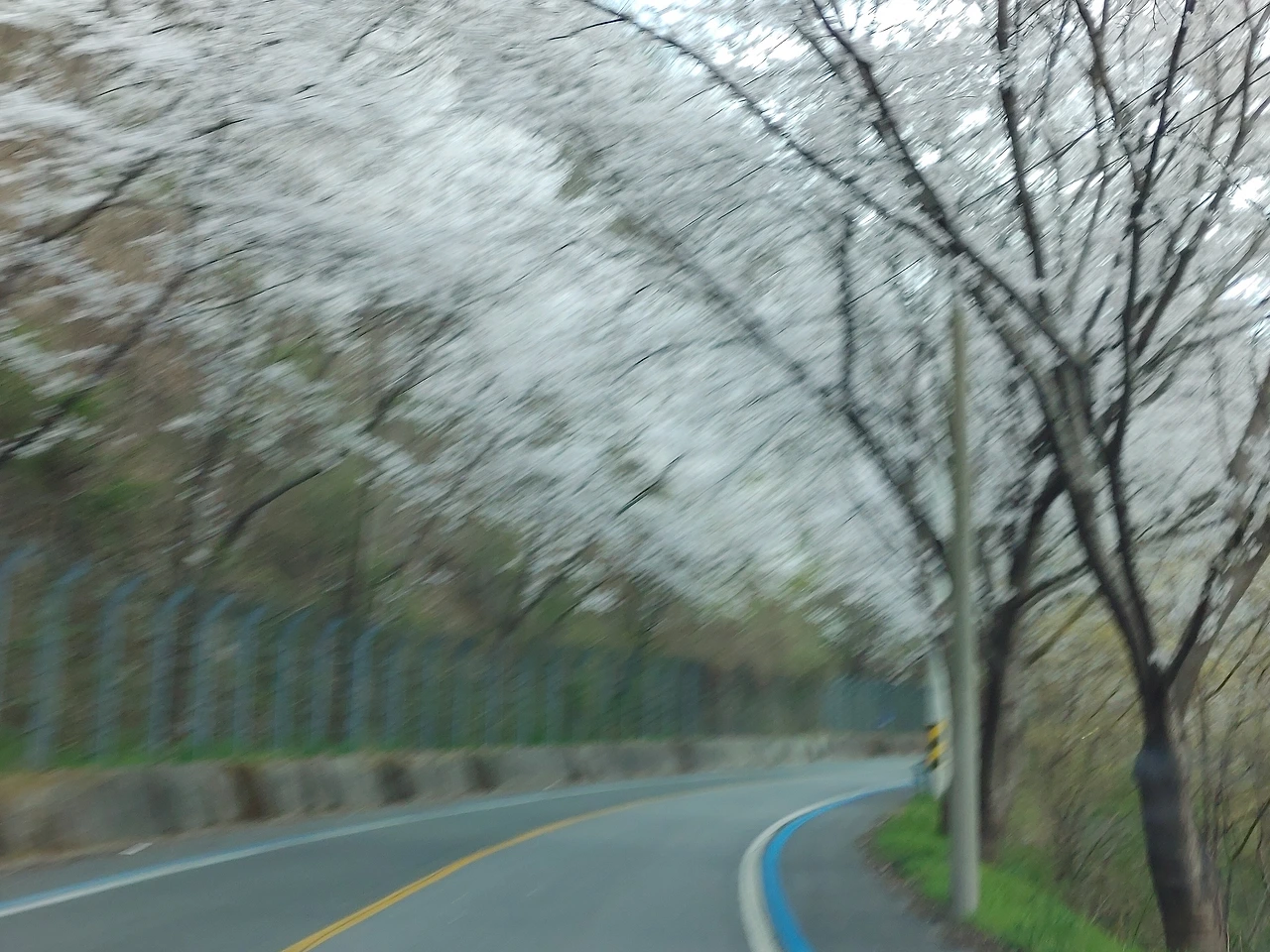 빠져나가니 길가는 물론 온 산이 만개한 벚꽃 천지다.