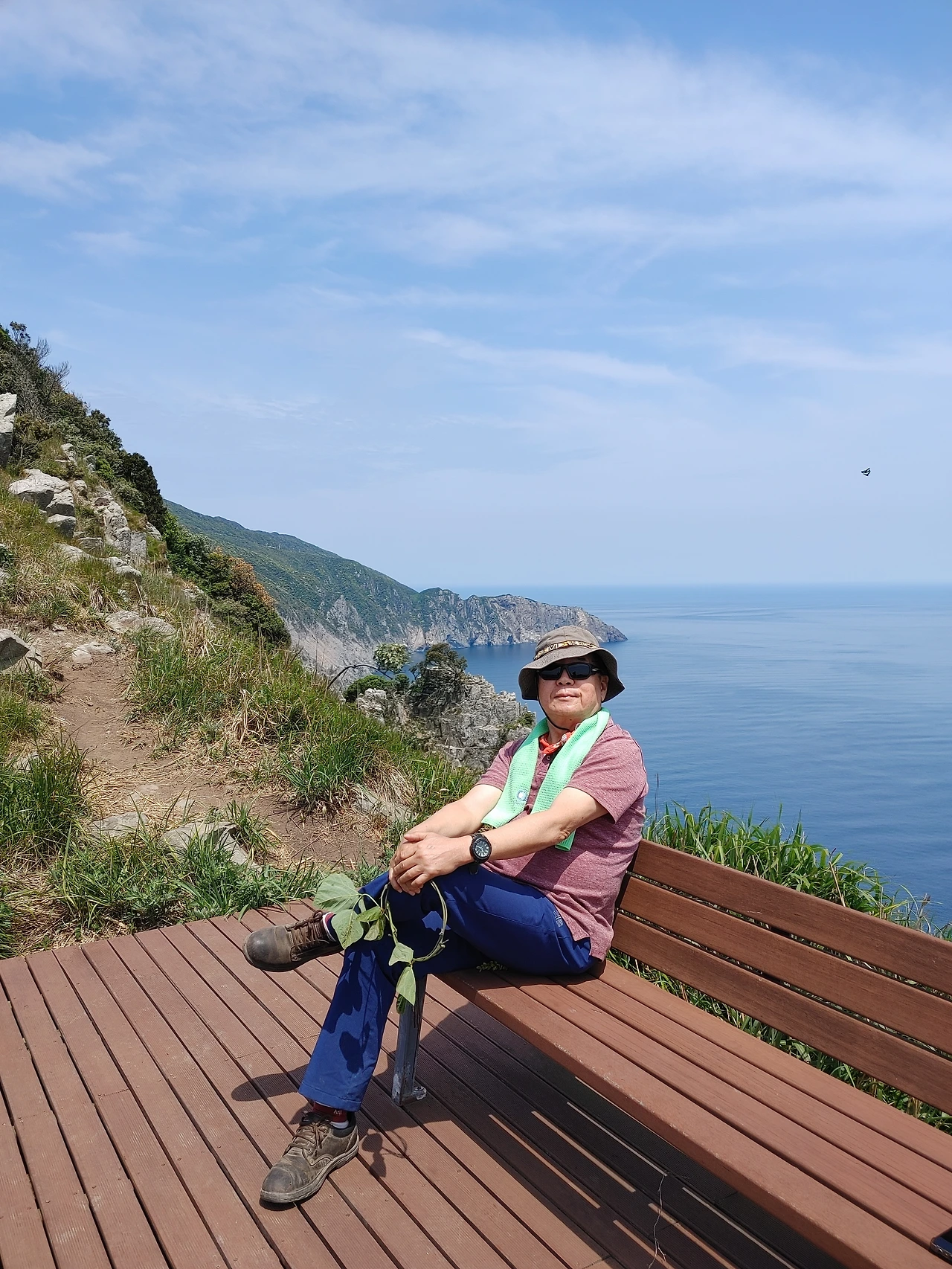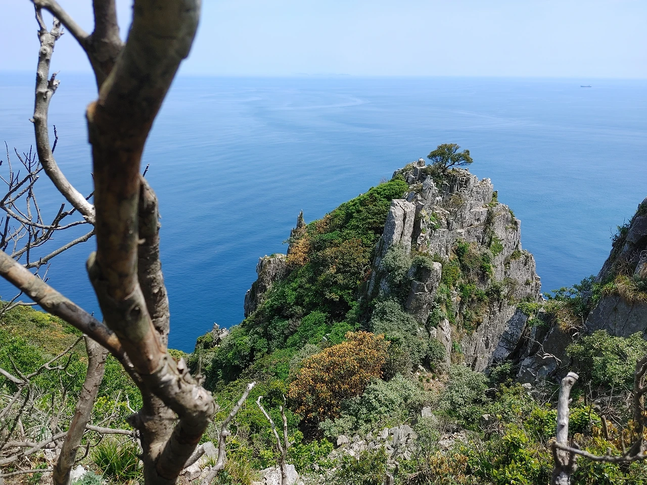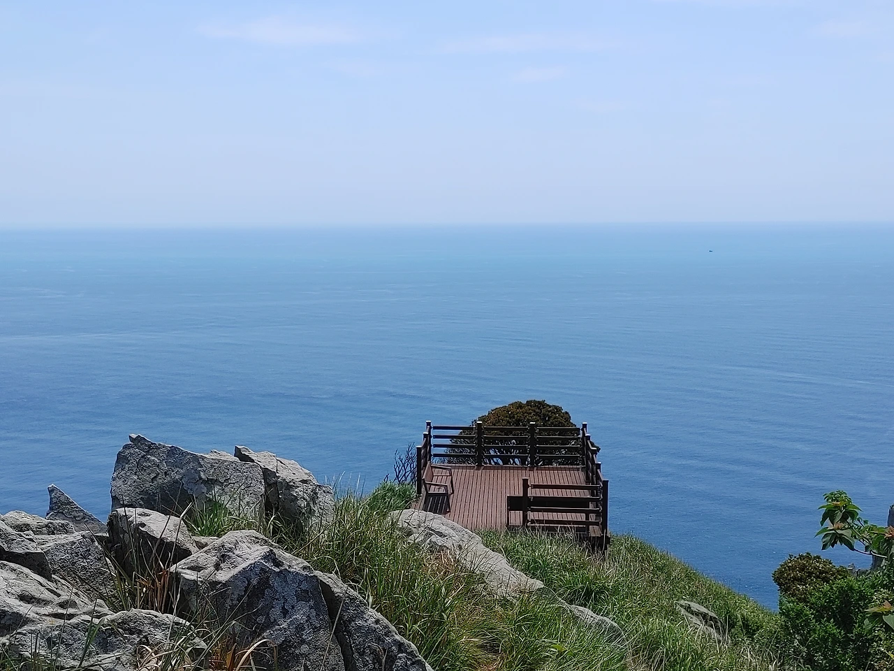 여기는 가거도(소흑산도) 남동쪽 벼랑 끝에 자리한 해뜰녁 이라는 전망대다. 카프리 섬을 다녀온 함께한 동료가 마치 이 섬이 카프리 섬 같다는 이곳의 경치와 눈이 부시도록 화창한 날씨 그리고 코 끝을 간지럽히는 봄바람, 여기에 더하여 함께한 사람들도 모두 모두 다 좋다. 갯내음 까지도 좋다. 한 장소에 이렇게 까지 취하기는 정말 오랜만이다. 한 시간을 여기에 눌러앉았다가 더 올라가는 오전 일정을 포기하고 되돌아서 그냥 내려왔다.