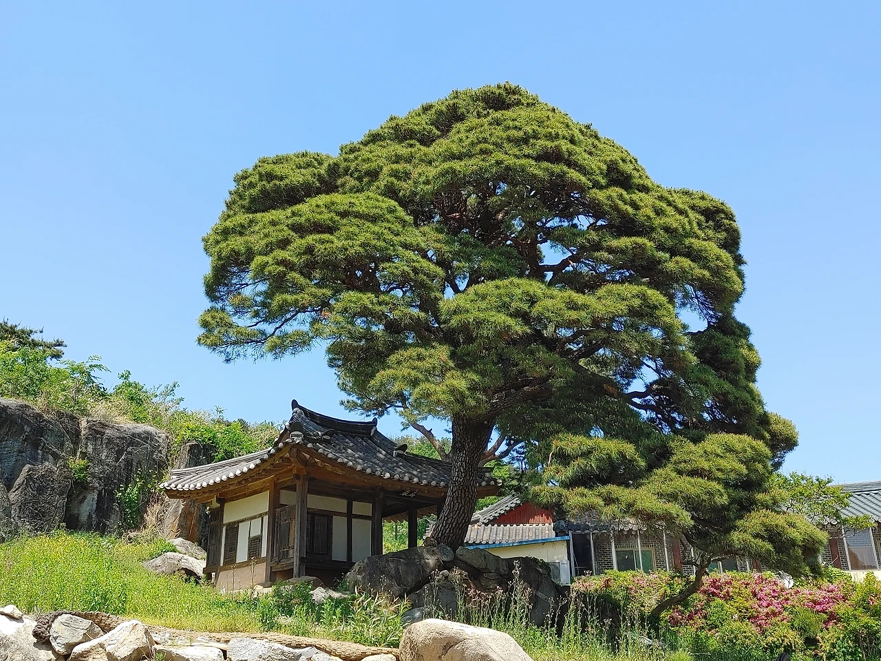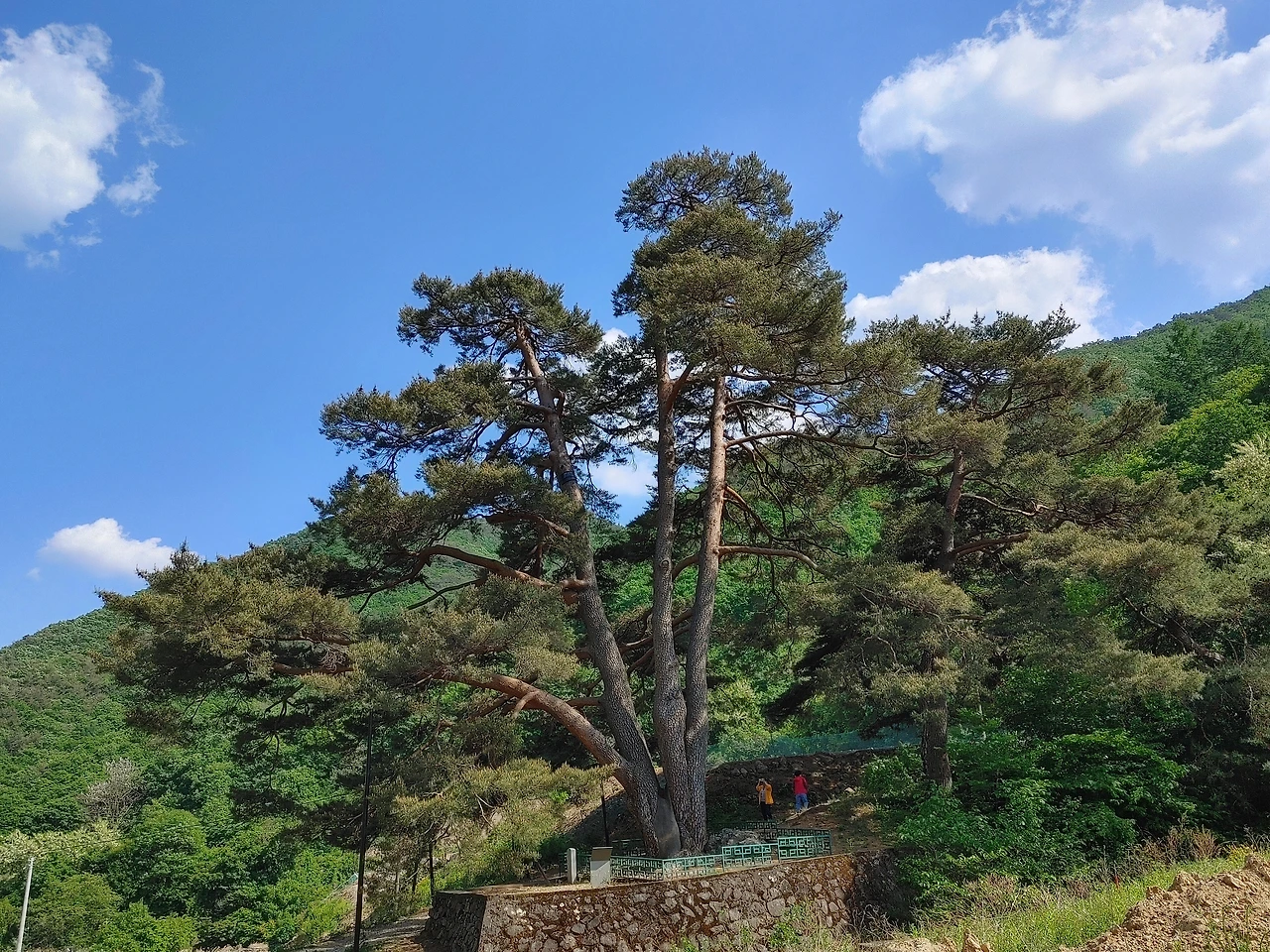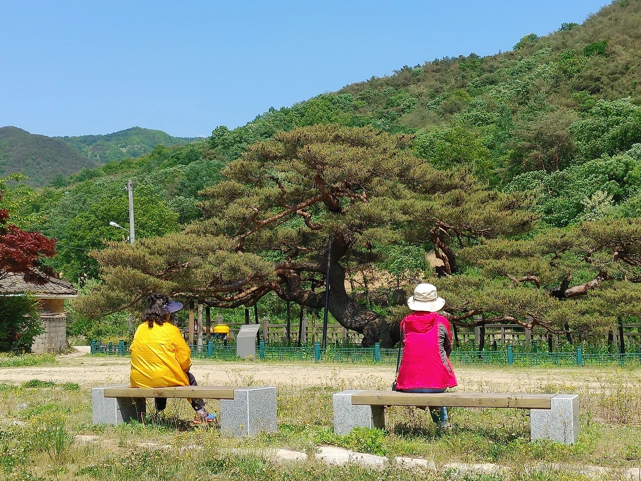 400년 이상된 반송으로 밑동에서는 마치 두 개의 우산을 맞들고 있는 듯 하지만 전체 나무 형상은 마치 하나인 듯 멋진 조화를 이루고 있다. 자연을 보면서 삶의 귀감을 찾는다고 하였는데 마냥 티격태격 살아가는 우리 부부에게 좋은 귀감이 되는 나무인 것 같았다.