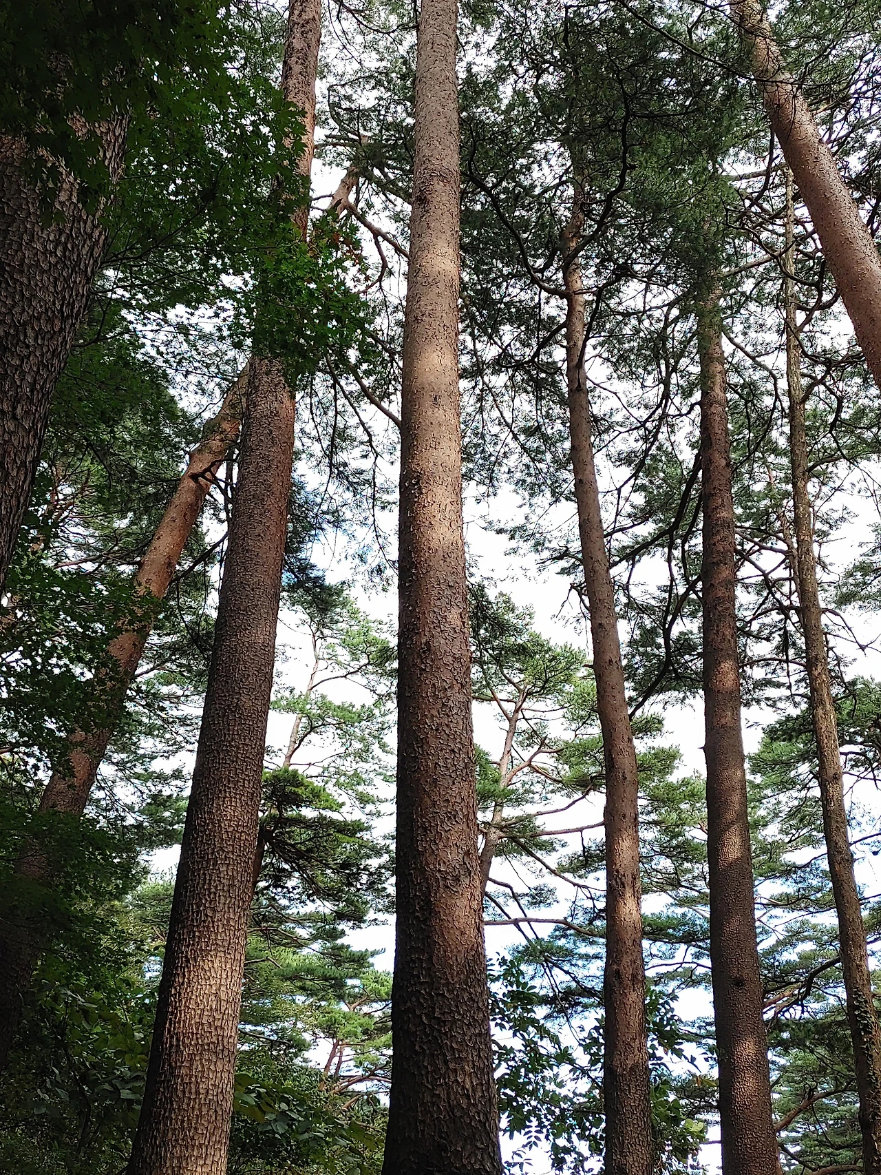 가파른 산길을 돌고 돌아 한 시간 남직 올라가니 준경묘 입구가 나왔다. 갑자기 시야가 시원하게 펼쳐졌다. 입구로 들어서니 몸에 느껴지는 명당의 기운이 예사롭지가 않았다. 치부만 가리고 사방에 종아리를 쭉쭉 들어낸 미인송들이 음기보다는 오히려 서기를 느끼게 한다.