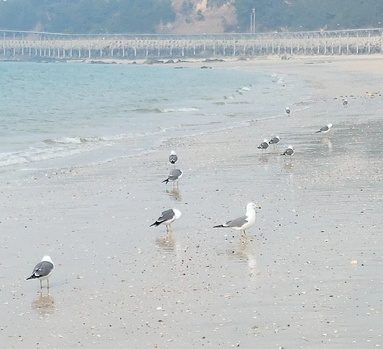 갈매기 외에는 아무것도 없는 텅 빈 백사장이다.
