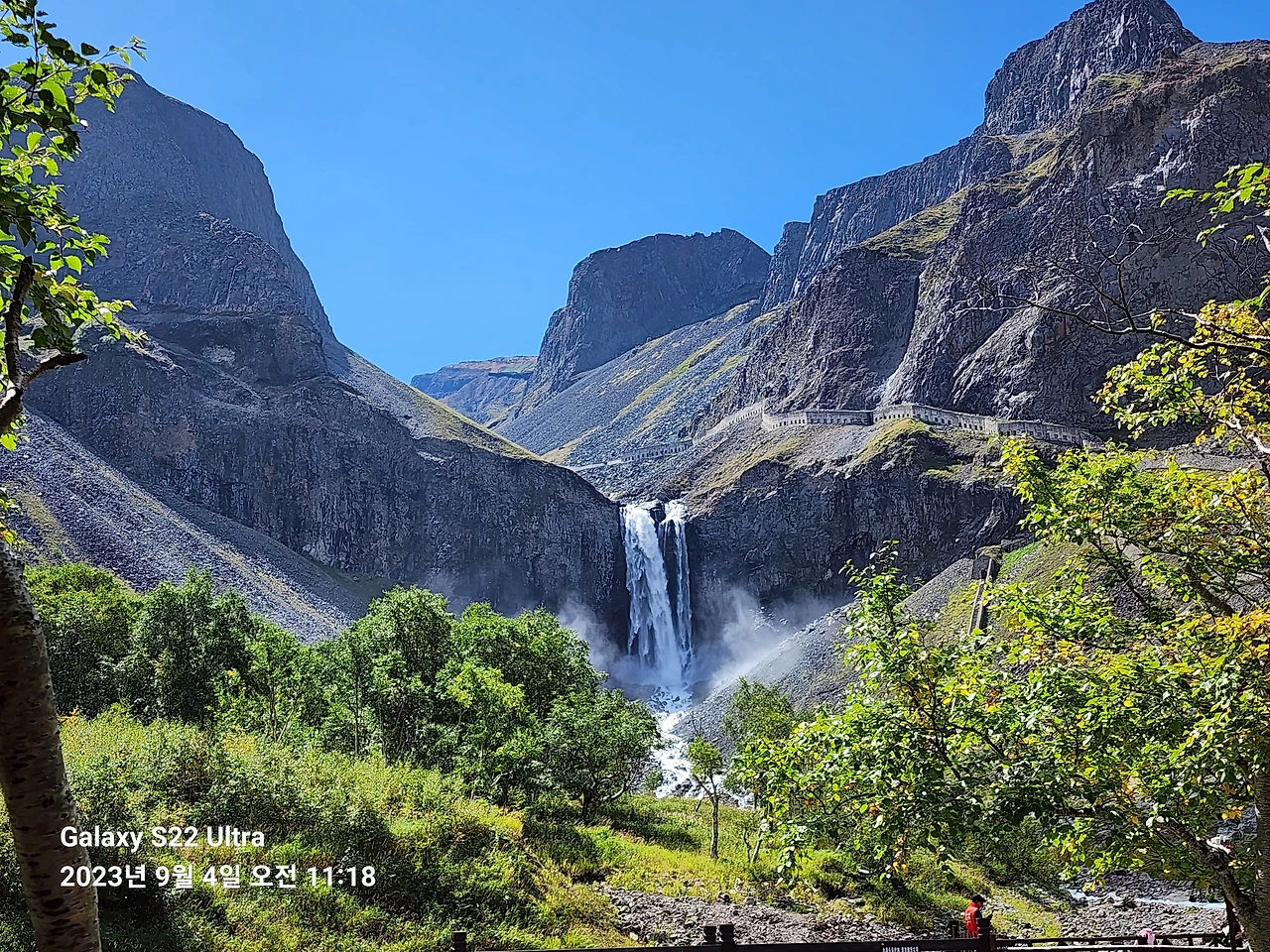 오늘 지난날 아쉬움을 안고 돌아섰던 바로 그 자리에 다시 섰다. 지난날과는 다르게 장백폭포 초입은 깔끔하게 잘 정비되어 있다. 도로는 물론 각종 편의시설을 완벽하게 갖추어 놓았다. 이곳 입장은 당국이 제공하는 전용버스로만 가능하고 입장료는 무려 8만이나 한다