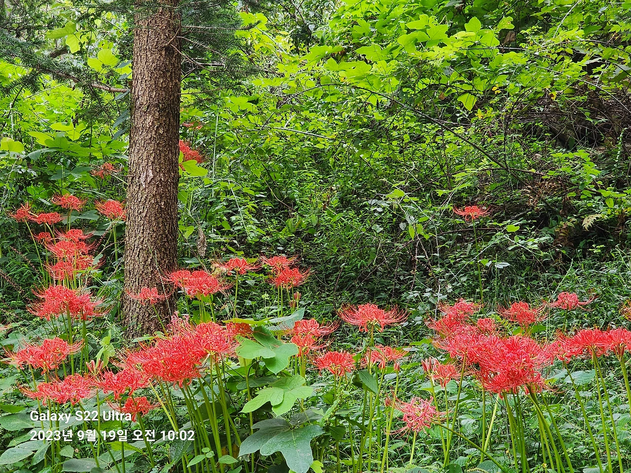 이곳 역시 상사화는 이미 지고 앙상한 뼈대만 남아있다. 분명히 제철인데금년의 변덕스러운 날씨가 상사화 개화시기마저 무참하게 뭉게 버렸다.