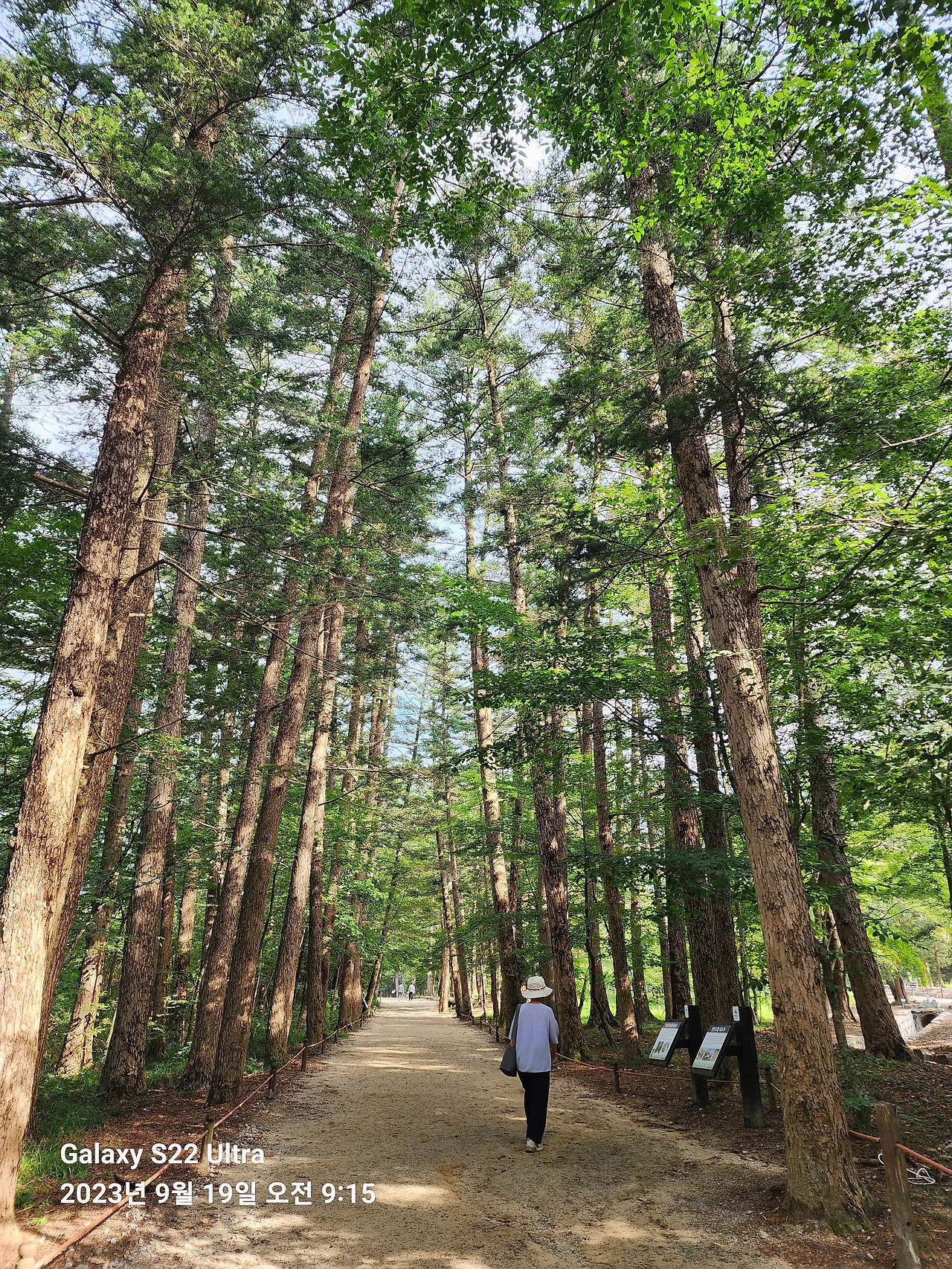 내소사는 뭐니 뭐니 해도 입구에 있는 전나무 숲길이 명품이다. 안개가 걷힌 직후라 아침 길이 너무 호젓하다. 늦더위에 풀이 죽어있던 아내의 얼굴에 화색이 돌아왔다. 다리에 힘이 오르는지 나보다 종종걸음으로 저만치 앞서간다.