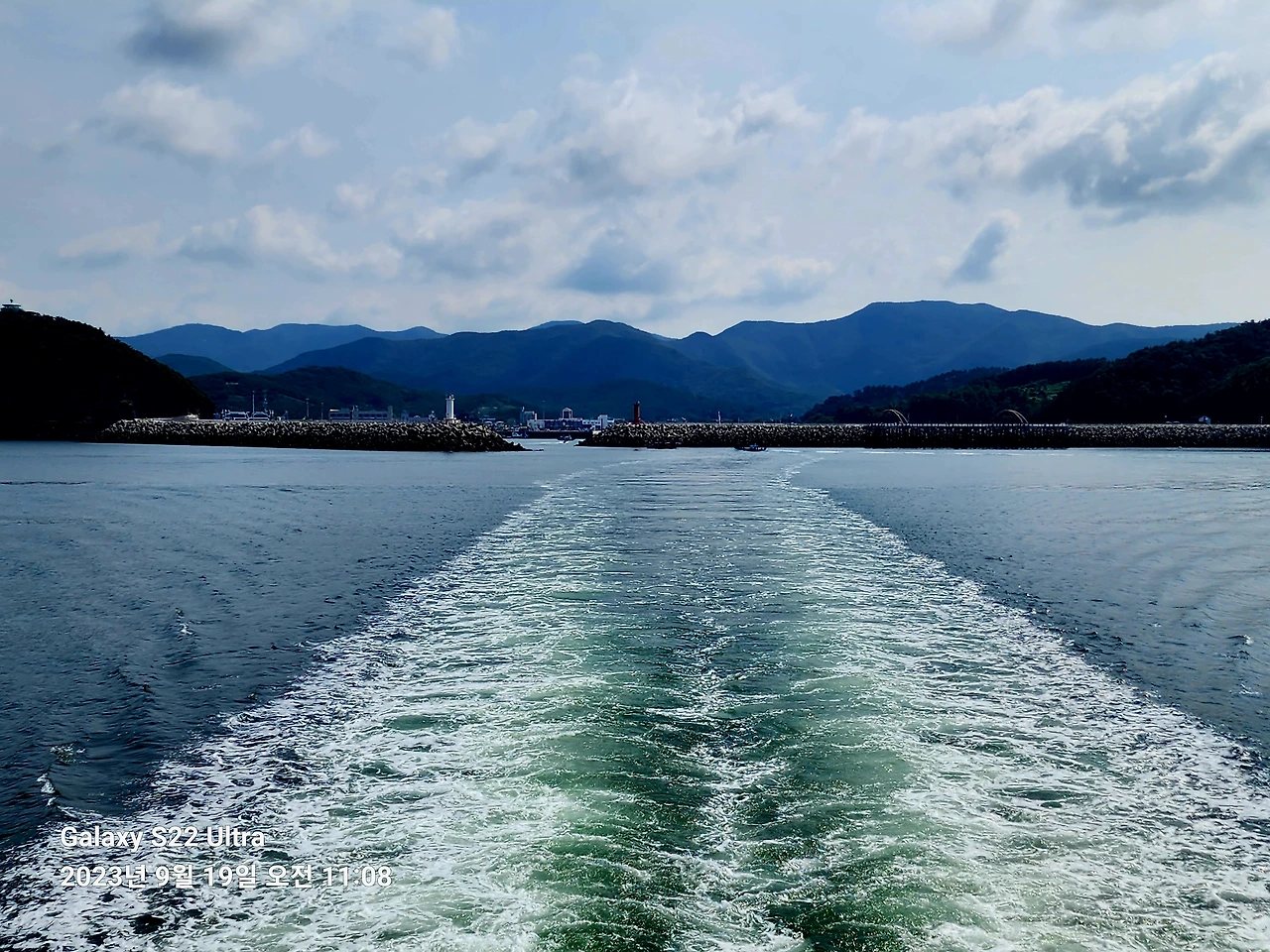 마침 11시에 입도하는 배가 있어 서둘러 타고나니 숨이 찬다. 출도는 오후 2시 10분에 하기로 했다. 이 항로는 1993년 여객선 침몰 사고로 300명의 아까운 목숨을 앗아간 곳이기도 하다. 오늘 바다는 호수처럼 잔잔하다. 한 시간 만에 위도에 도착하여 상륙을 했다.