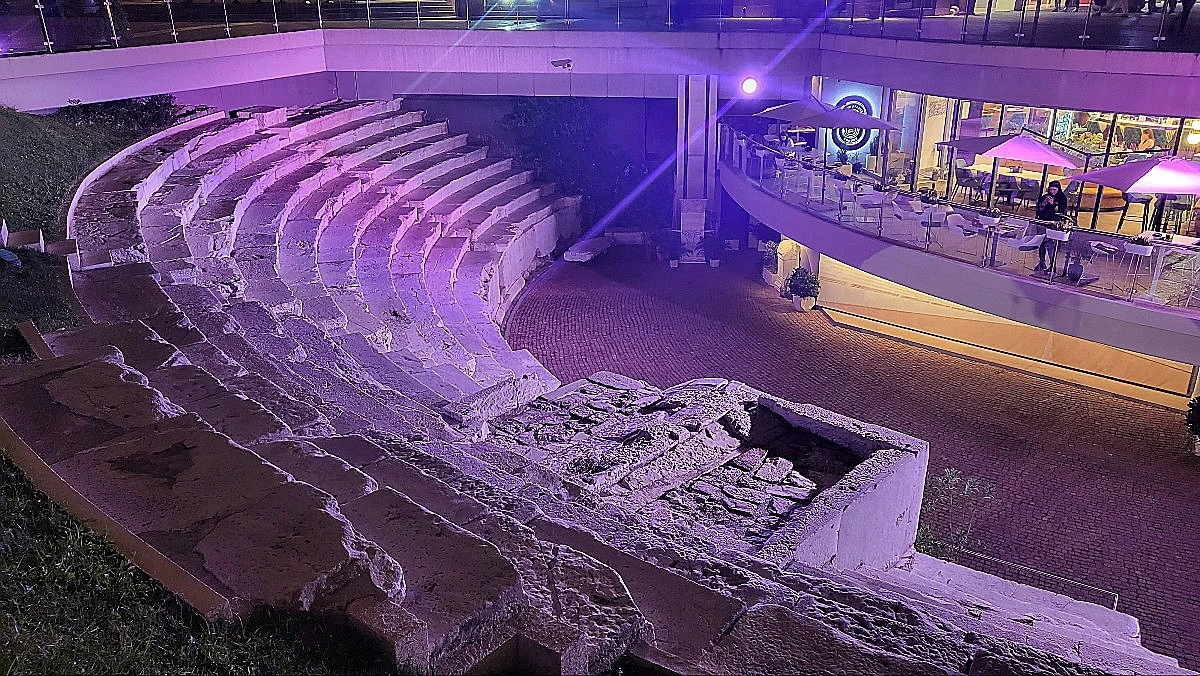 지하에 묻혀있던 기원전 로마 시대의 소 규모 원형경기장을 복원해 놓고 그 속에 카페를 만들어 놓았다. 장사 속이라고 하기에는 너무 아이디어가 기발하다.