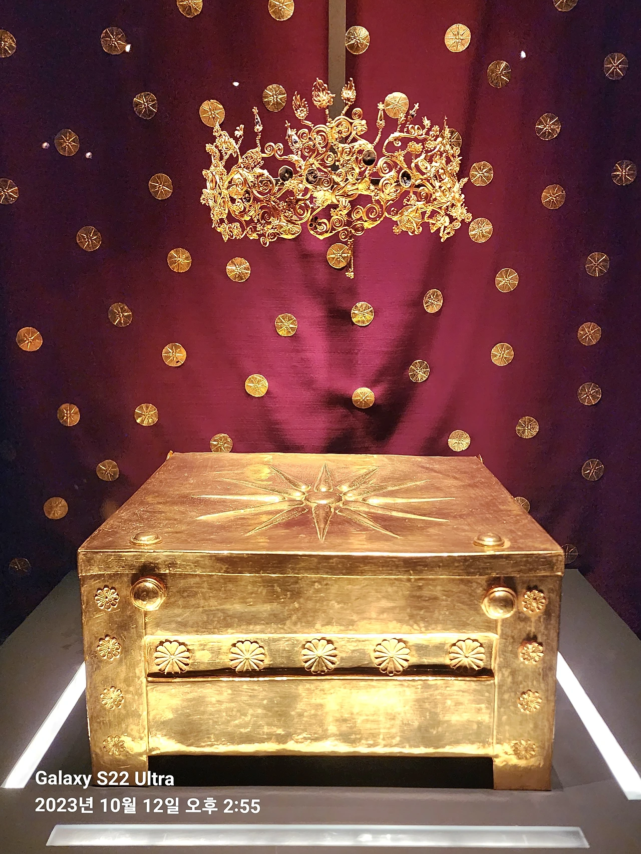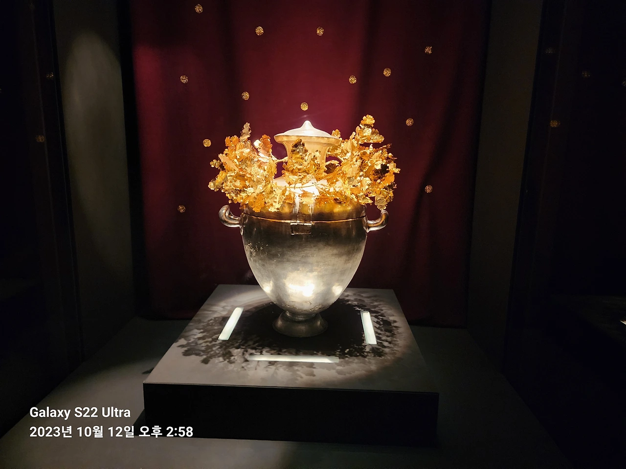 어찌 되었든 필리포스 2세는 알렉산드로스에 버금가는 그리스사 영웅이라 그로 추정되는 무덤 발굴은 20세기 그리스 고고학의 중요 성과로 인정받고 있다. 나는 경주 천마총이 연상되면서 능묘 안으로 들어갔다. 생각보다 크고 넓고 깊은 능묘였다. 그리고 발굴된 부장품들이 같이 전시되어 있는데 유골함의 경우 금박으로 한 것이 아니라 아예 황금덩어리 자체라고 하니 입이 떡 벌어졌다.