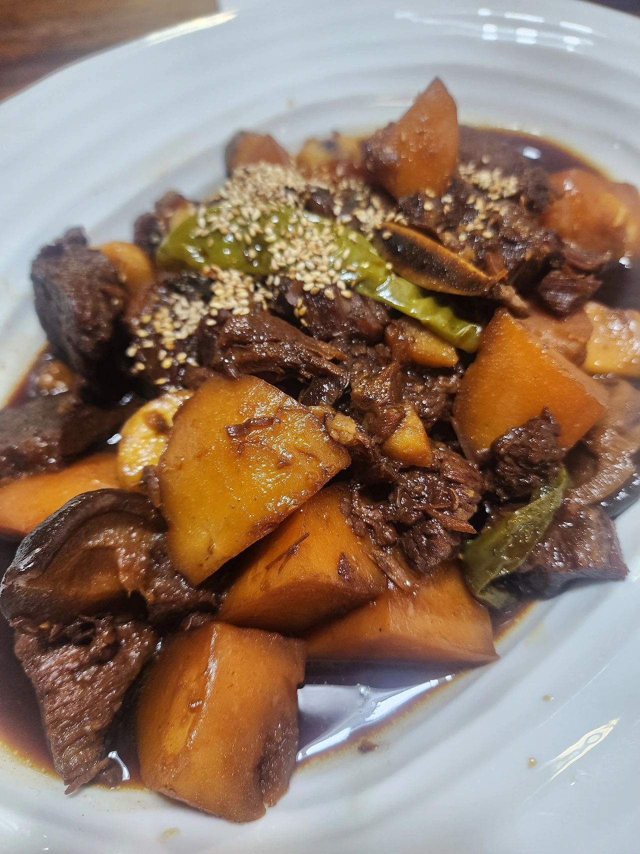 딸이 아침부터 준비하였다는 갈비찜과갯장어 탕수 외 다른 세가지 요리는 생소한 양식 요리로 와인과 함께 먹기에는 일품이었다.
