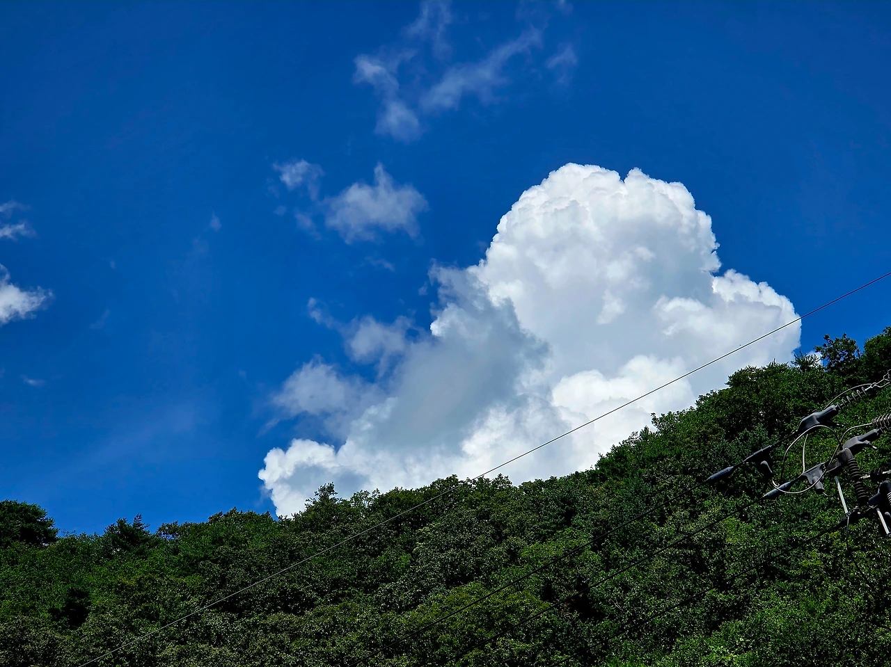먼 산에 오랜만에 뭉게구름이 솟아오릅니다.