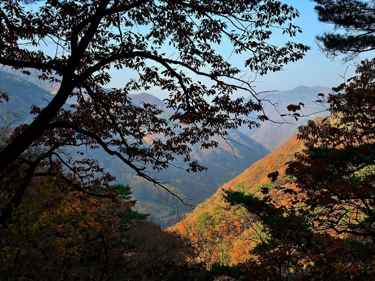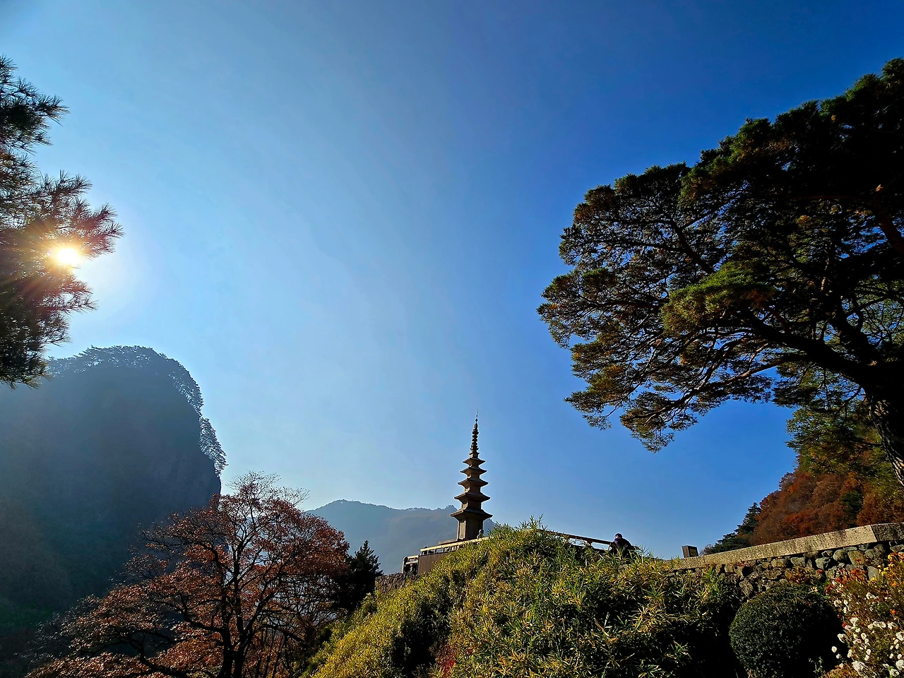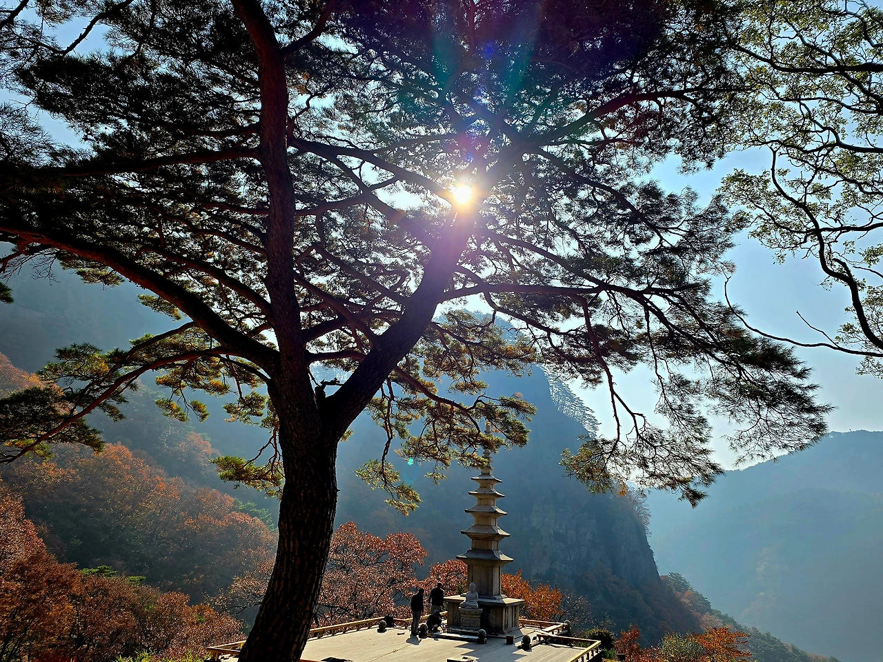 석탑이 중생들 몰래 청명한 가을 하늘과 정분을 나누고 있었는데 오색으로 물든 주변 봉우리들이 다 같이 합장을 하고 있었다.