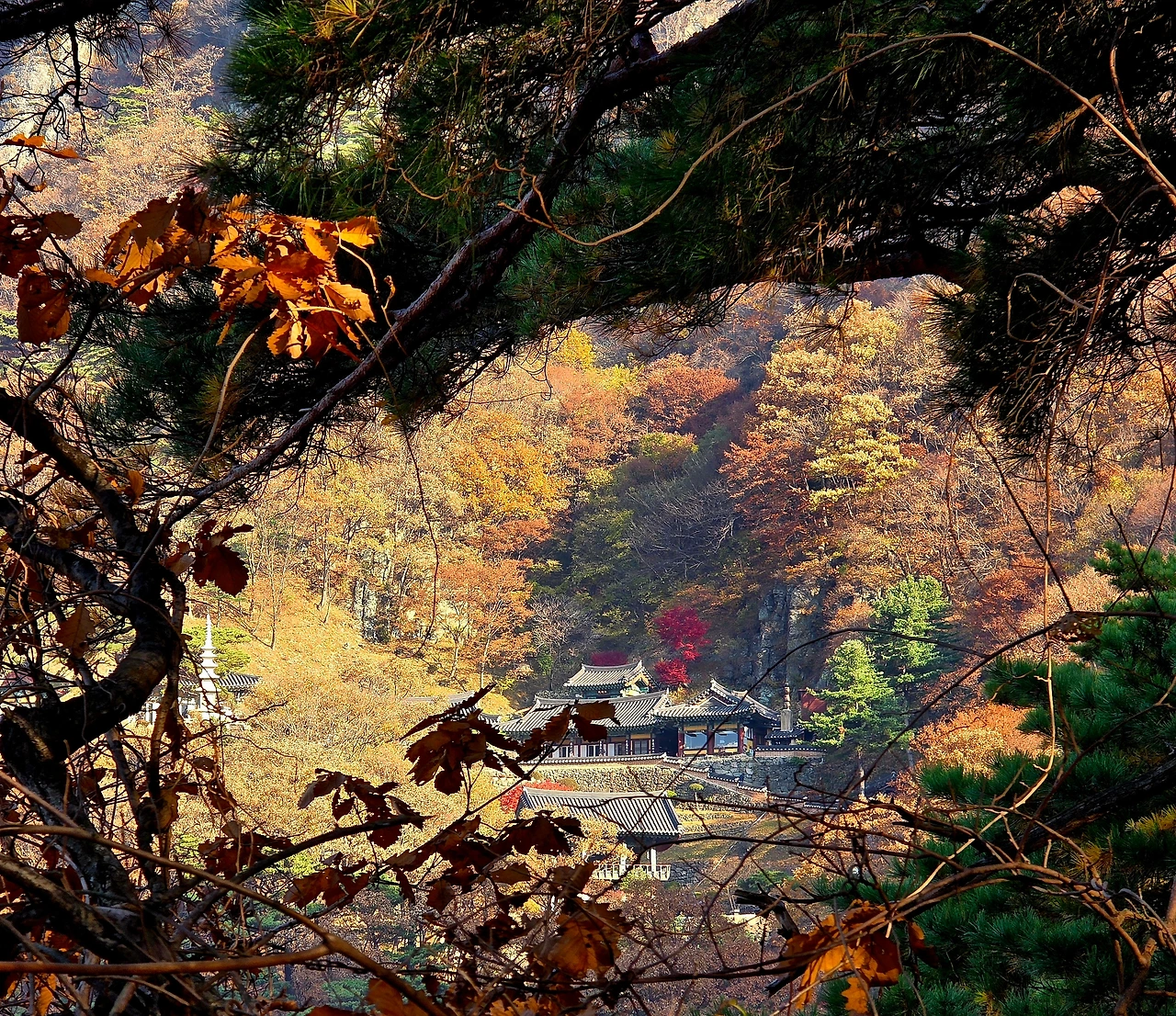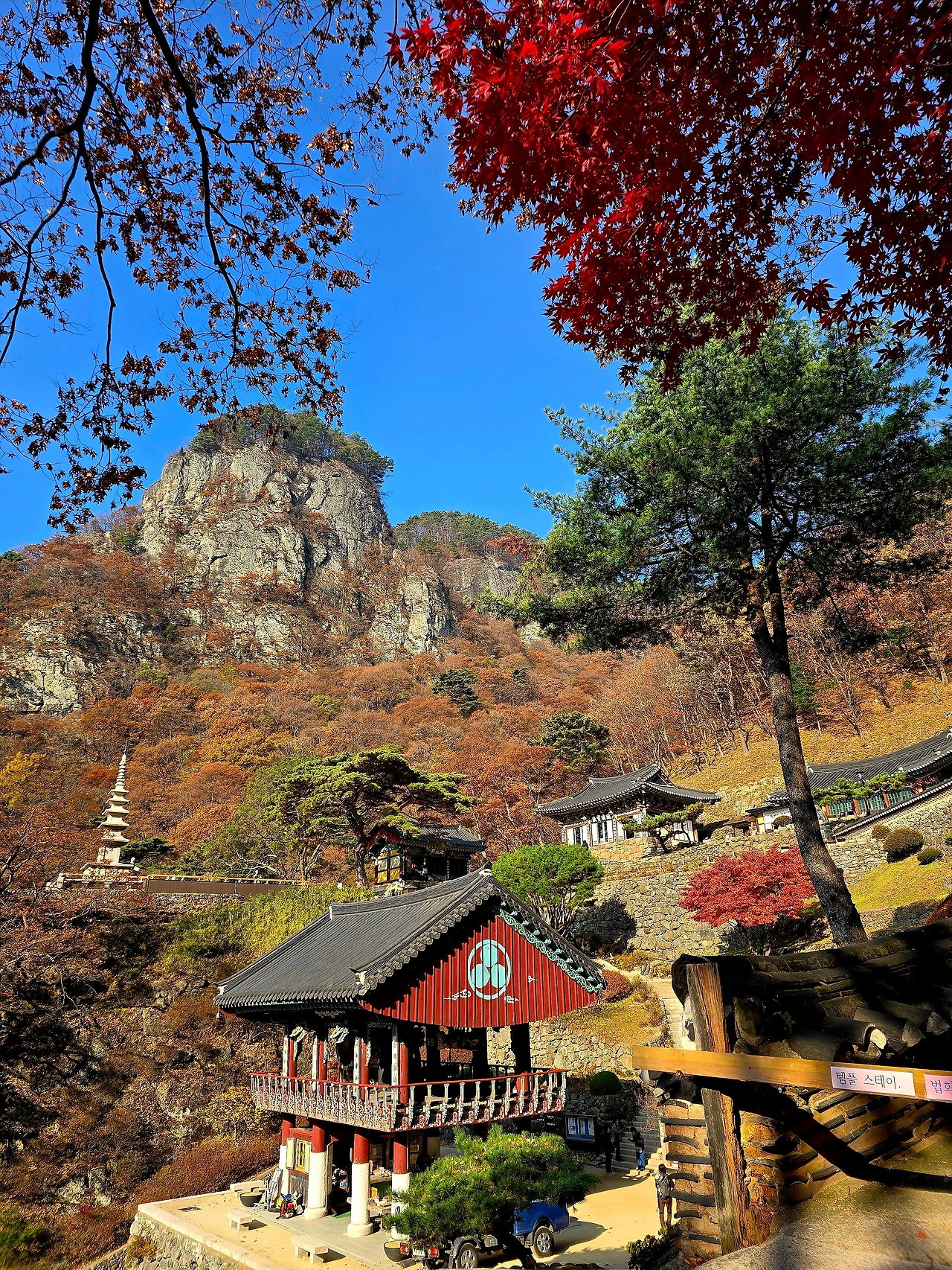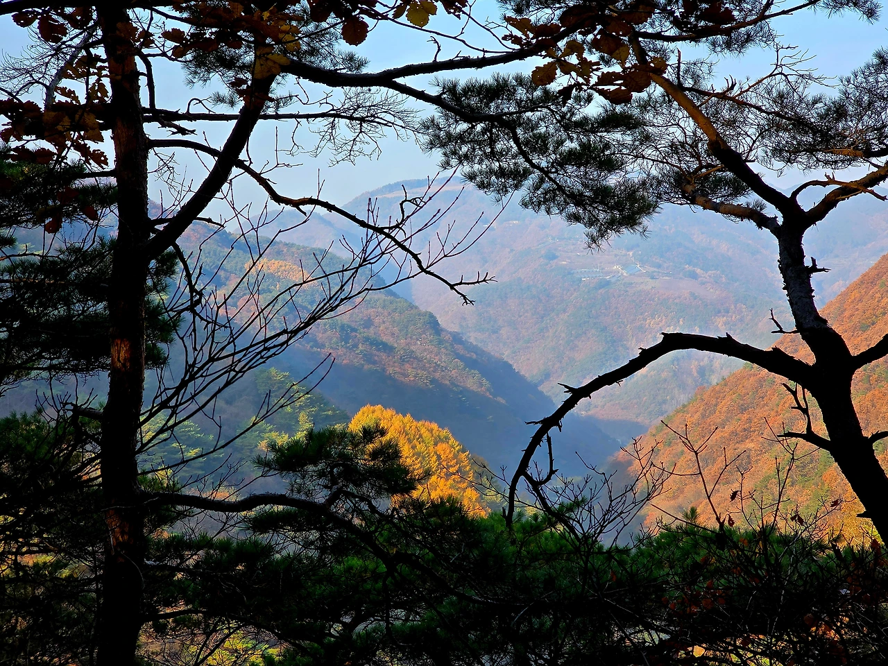 석탑이 중생들 몰래 청명한 가을 하늘과 정분을 나누고 있었는데 오색으로 물든 주변 봉우리들이 다 같이 합장을 하고 있었다.