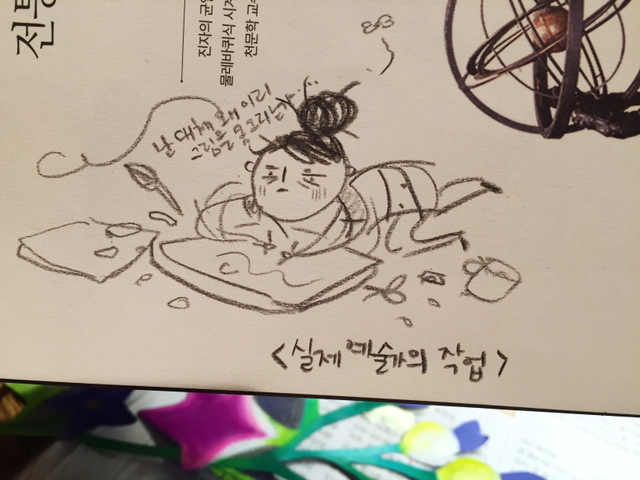 갑자기 영감이 떠올라서 우아하게 붓을 들고 퐈바박 대작 그림을 그려내는 예술가