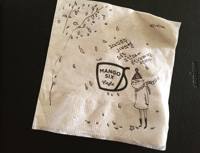 냅킨에 그리는 드로잉, 하루의 그림일기, '지금 내 귓가'에 들리는 음악을 그려요. by 일러스트레이터 허경원