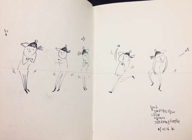 냅킨에 그리는 드로잉, 하루의 그림일기, '지금 내 귓가'에 들리는 음악을 그려요. by 일러스트레이터 허경원
