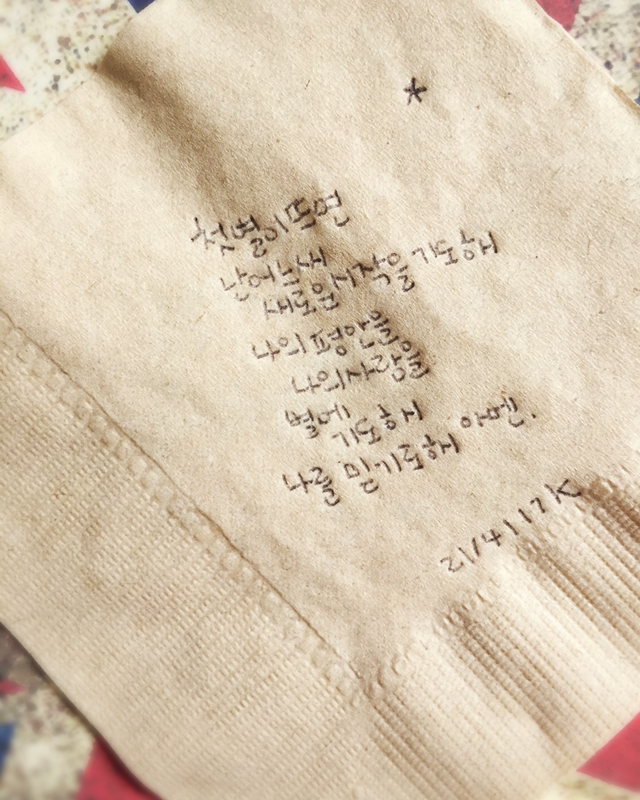 나의 방황을 나의 가난을 별에 기도해 다 잊기로 해 -이소라, 아멘 /이렇게 좋은 노래를 모르고 있었다니! https://youtu.be/U1PQgyXdODo#지금내귓가 #음악 #이소라 #amen #레터링 #그림일기 #냅킨드로잉 #napkin #drawing #visial #diary #일러스트 #허경원