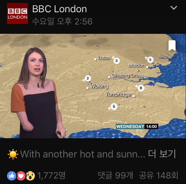 지금 이 비비씨 뉴스 캐스터는 자신의 직업을 다하는 한 사람으로서 자연스럽게 받아들여진다. 난 첨에 이게 이슈인지도 몰랐음