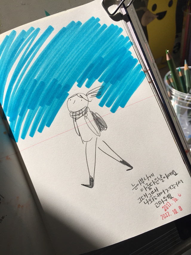 냅킨에 그리는 드로잉, 하루의 그림일기, '지금 내 귓가'에 들리는 음악을 그려요. by 일러스트레이터 허경원