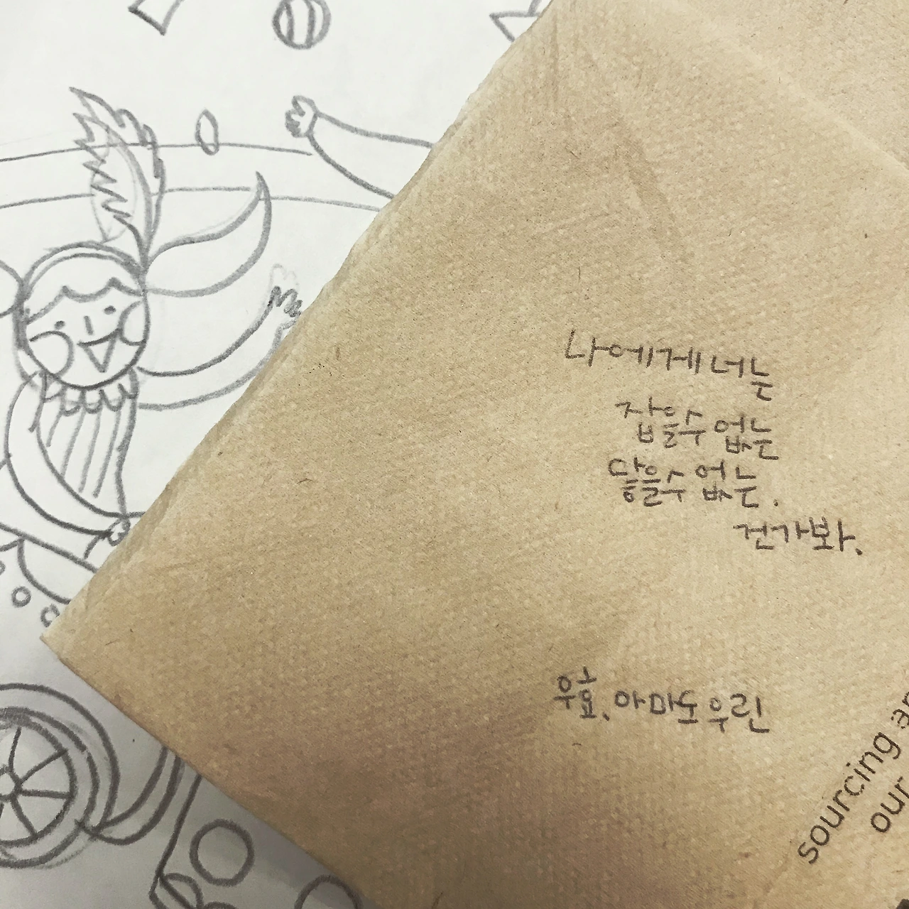 냅킨에 그리는 드로잉, 하루의 그림일기, '지금 내 귓가'에 들리는 음악을 그려요. by 일러스트레이터 허경원