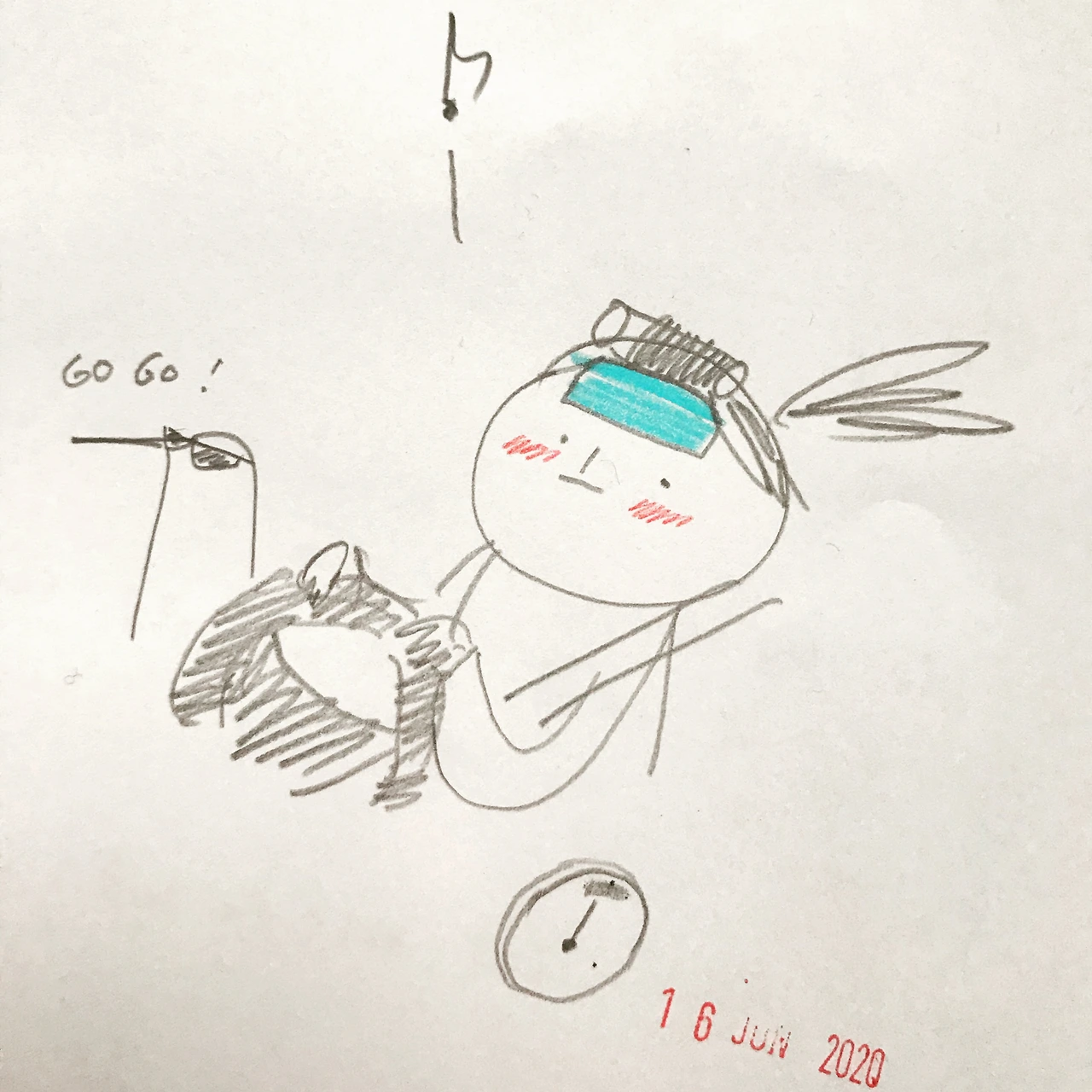 아침 6시인데도 살짝 더운 느낌을 식히려 이마에 냉각시트를 붙이고 앞머리는 헤어롤로 말고 운전하는 길에 백미러로 보이는 허 작가의 모습은...