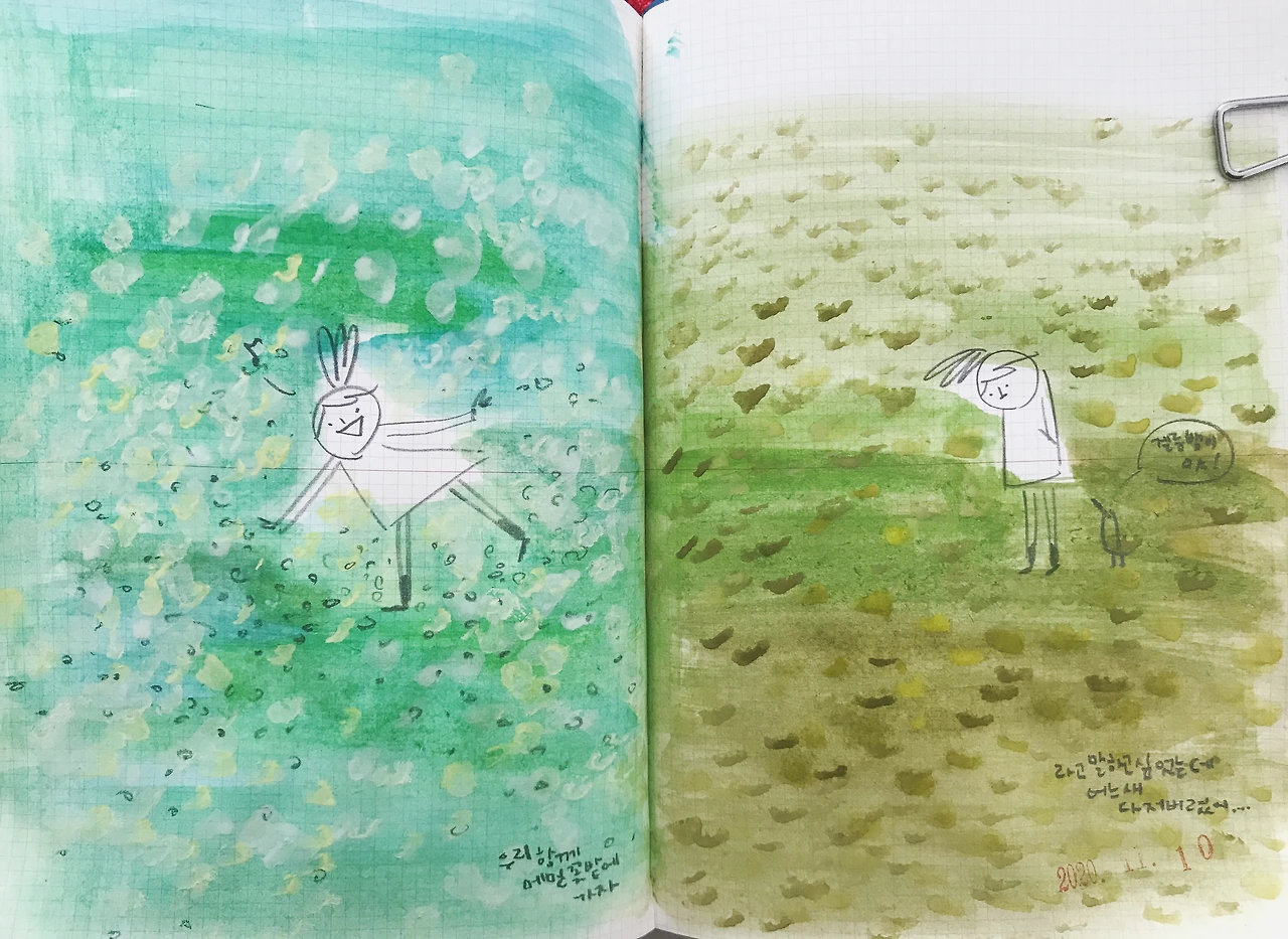 라고 말하고 싶었는데....오늘 보니 이제 메밀꽃 다 갔어요...그대한테 살짝 말하지도 못했는데...영원하지 않은 꽃 시간 속에 늦지 않게 말할걸...#그림일기 #드로잉 #일러스트레이션 #제주일상